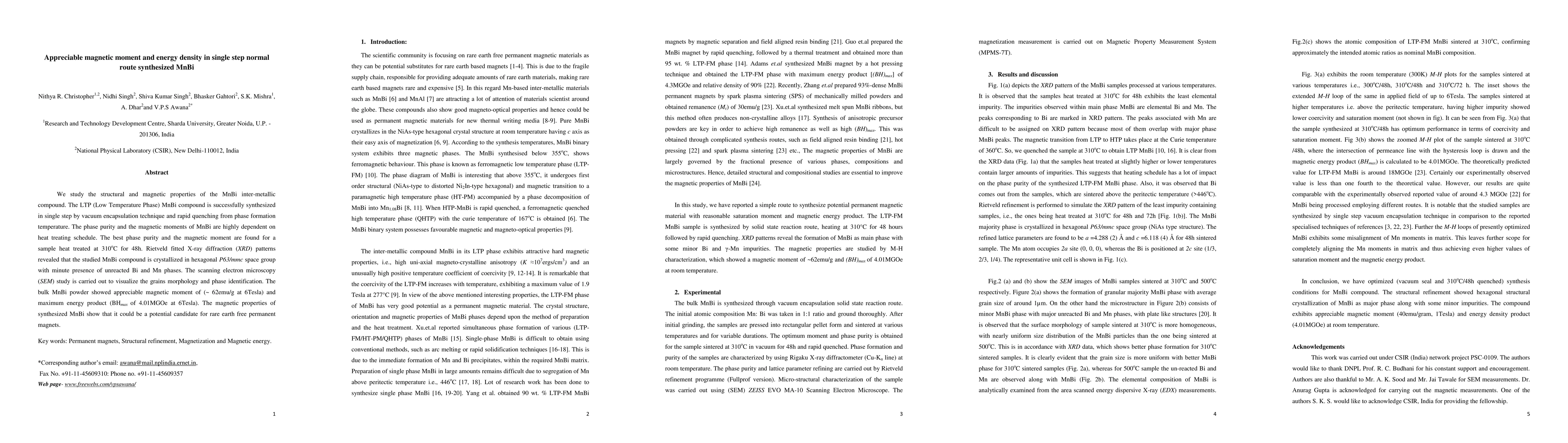 Researchers synthesized a new material called MnBi in a single step using vacuum encapsulation and rapid quenching, achieving high magnetic moment and energy density, making it a potential candidate for rare earth-free permanent magnets.