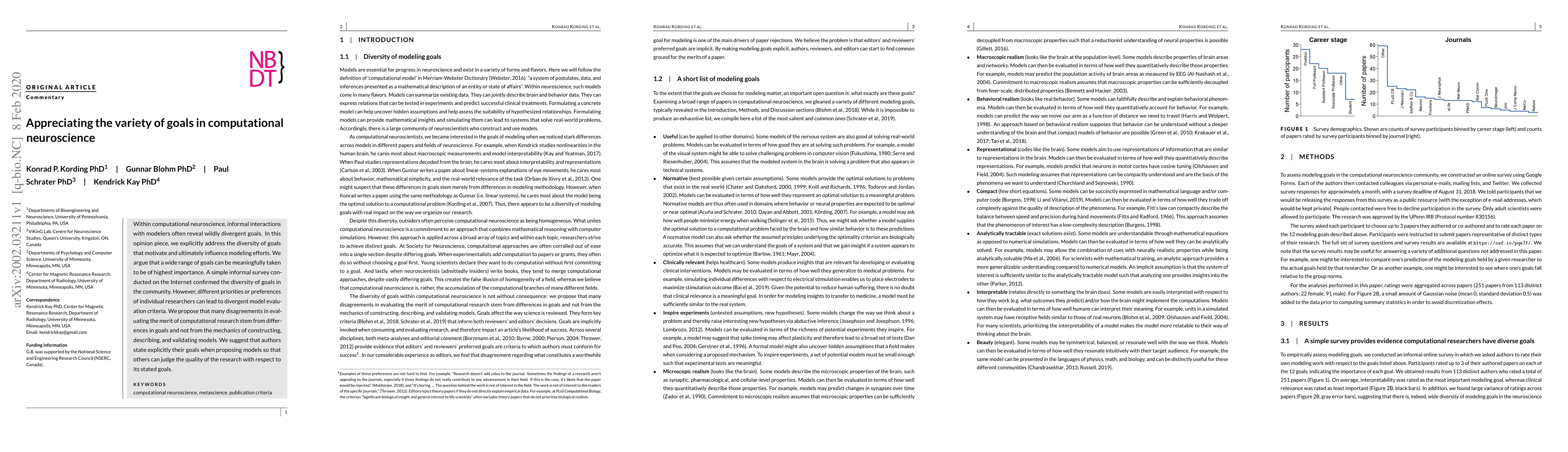 A study highlights the diversity of goals in computational neuroscience, suggesting that authors should explicitly state their research goals to facilitate fair evaluation by others. This approach can help resolve disagreements in model evaluation criteria.