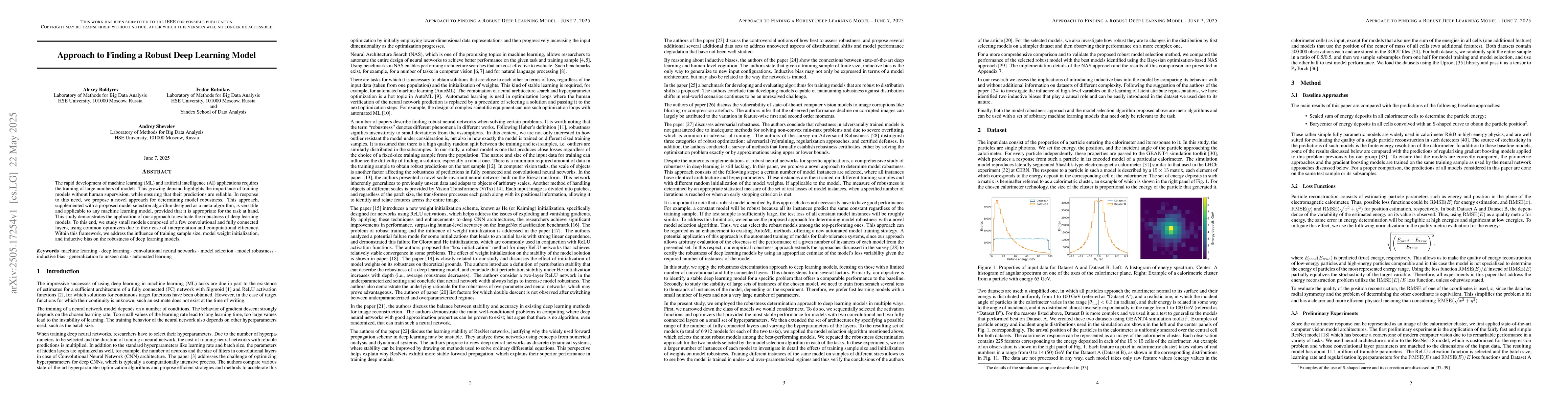 The rapid development of machine learning (ML) and artificial intelligence (AI) applications requires the training of large numbers of models. This growing demand highlights the importance of training models without human supervision, while ensuring that their predictions are reliable. In response to this need, we propose a novel approach for determining model robustness. This approach, supplemented with a proposed model selection algorithm designed as a meta-algorithm, is versatile and applicable to any machine learning model, provided that it is appropriate for the task at hand. This study demonstrates the application of our approach to evaluate the robustness of deep learning models. To this end, we study small models composed of a few convolutional and fully connected layers, using common optimizers due to their ease of interpretation and computational efficiency. Within this framework, we address the influence of training sample size, model weight initialization, and inductive bias on the robustness of deep learning models.