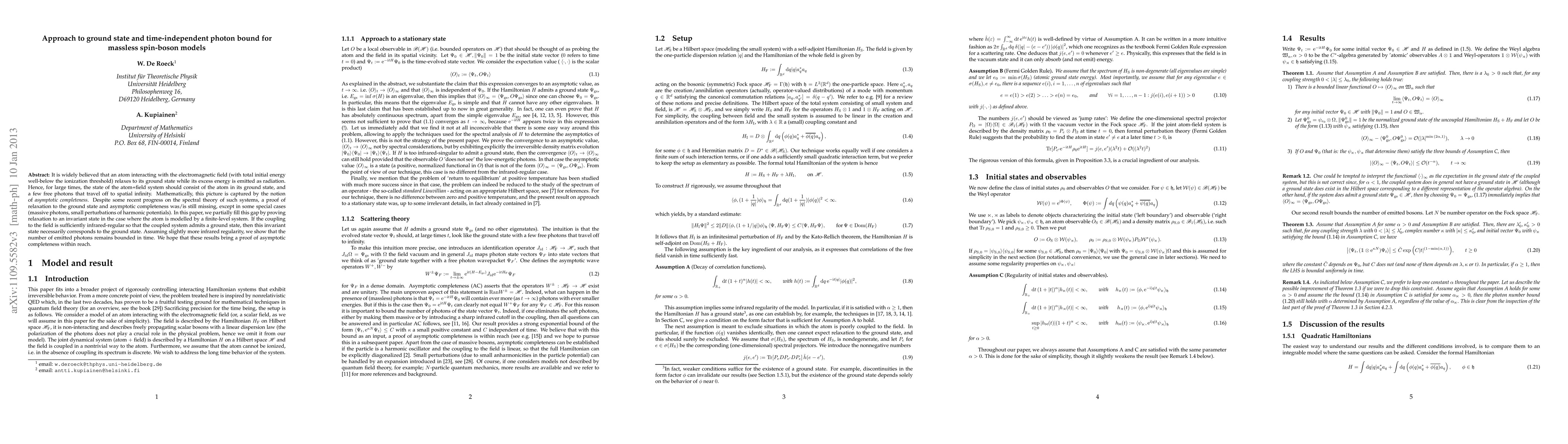 It is widely believed that an atom interacting with the electromagnetic field (with total initial energy well-below the ionization threshold) relaxes to its ground state while its excess energy is emitted as radiation. Hence, for large times, the state of the atom+field system should consist of the atom in its ground state, and a few free photons that travel off to spatial infinity. Mathematically, this picture is captured by the notion of asymptotic completeness. Despite some recent progress on the spectral theory of such systems, a proof of relaxation to the ground state and asymptotic completeness was/is still missing, except in some special cases (massive photons, small perturbations of harmonic potentials). In this paper, we partially fill this gap by proving relaxation to an invariant state in the case where the atom is modelled by a finite-level system. If the coupling to the field is sufficiently infrared-regular so that the coupled system admits a ground state, then this invariant state necessarily corresponds to the ground state. Assuming slightly more infrared regularity, we show that the number of emitted photons remains bounded in time. We hope that these results bring a proof of asymptotic completeness within reach.