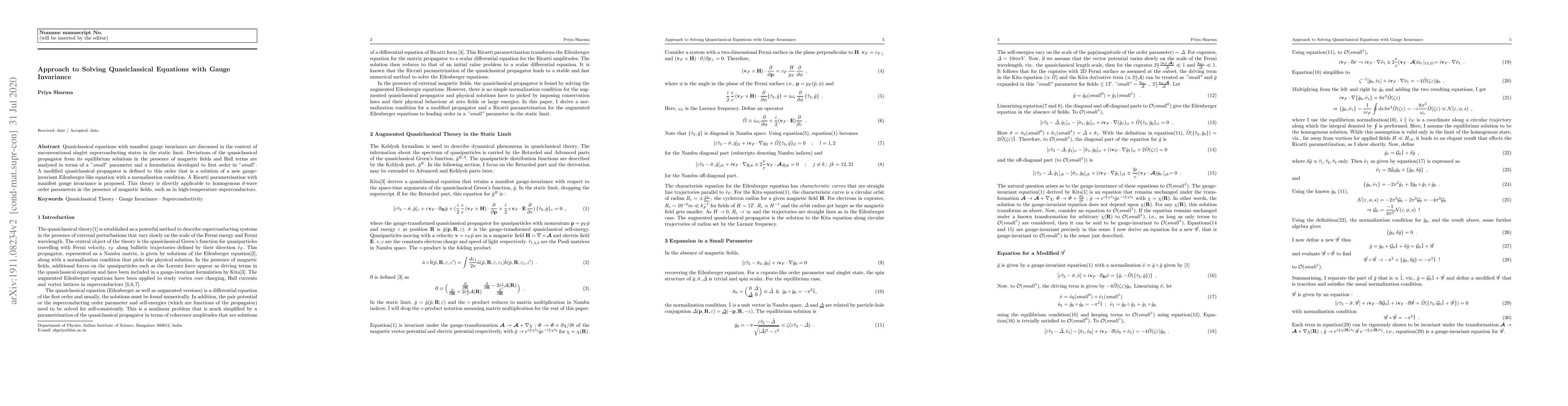 Quasiclassical equations with manifest gauge invariance are discussed in the context of unconventional singlet superconducting states in the static limit. Deviations of the quasiclassical propagator from its equilibrium solutions in the presence of magnetic fields and Hall terms are analysed in terms of a small parameter and a formulation developed to first order in small. A modified quasiclassical propagator is defined to this order that is a solution of a new gauge-invariant Eilenberger-like equation with a normalisation condition. A Ricatti parametrisation with manifest gauge invariance is proposed. This theory is directly applicable to homogenous d-wave order parameters in the presence of magnetic fields, such as in high-temperature superconductors.