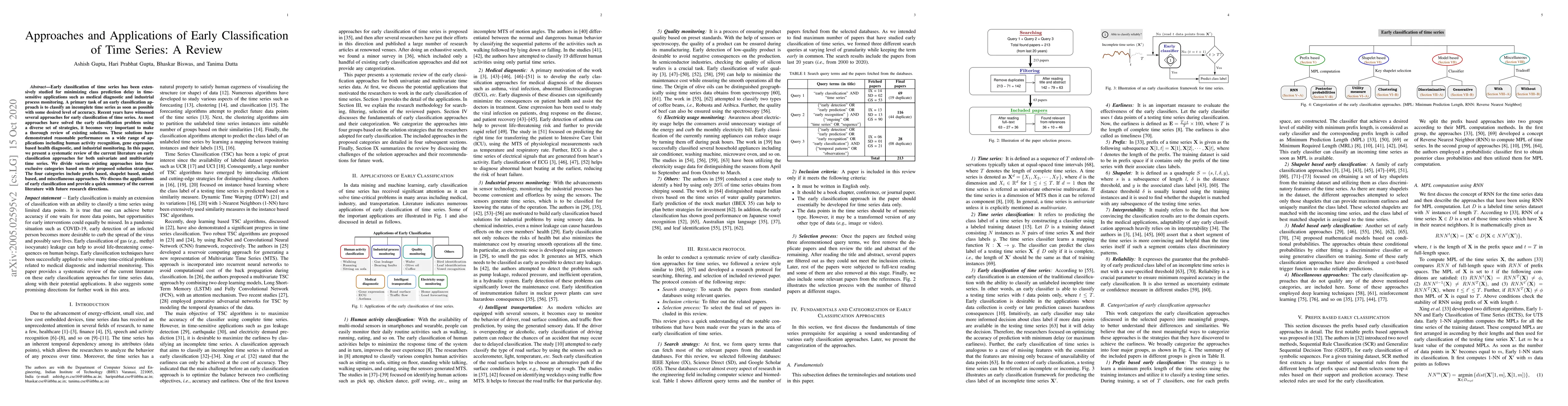 The paper presents a systematic review of existing literature on early classification approaches for both univariate and multivariate time series, categorizing them into four exclusive groups based on their proposed solution strategies: prefix based, shapelet based, model based, and miscellaneous approaches.