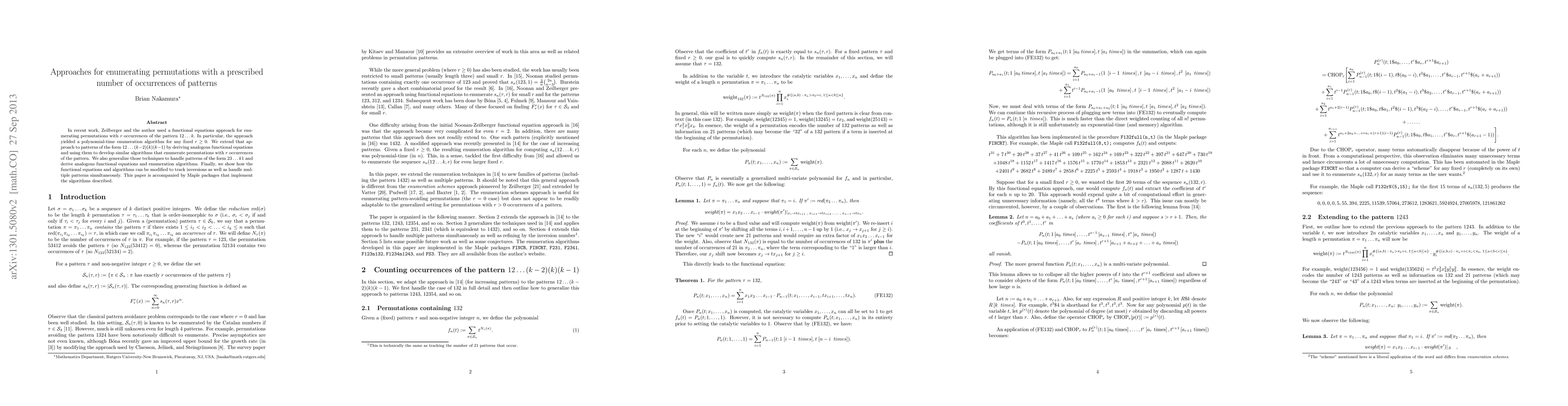 This paper extends Zeilberger's functional equations approach to enumerate permutations with a prescribed number of occurrences of specific patterns, including 12...(k-2)(k)(k-1) and 23...k1. It develops polynomial-time algorithms for these patterns and discusses modifications to track inversions and handle multiple patterns. Maple packages are provided for implementation.