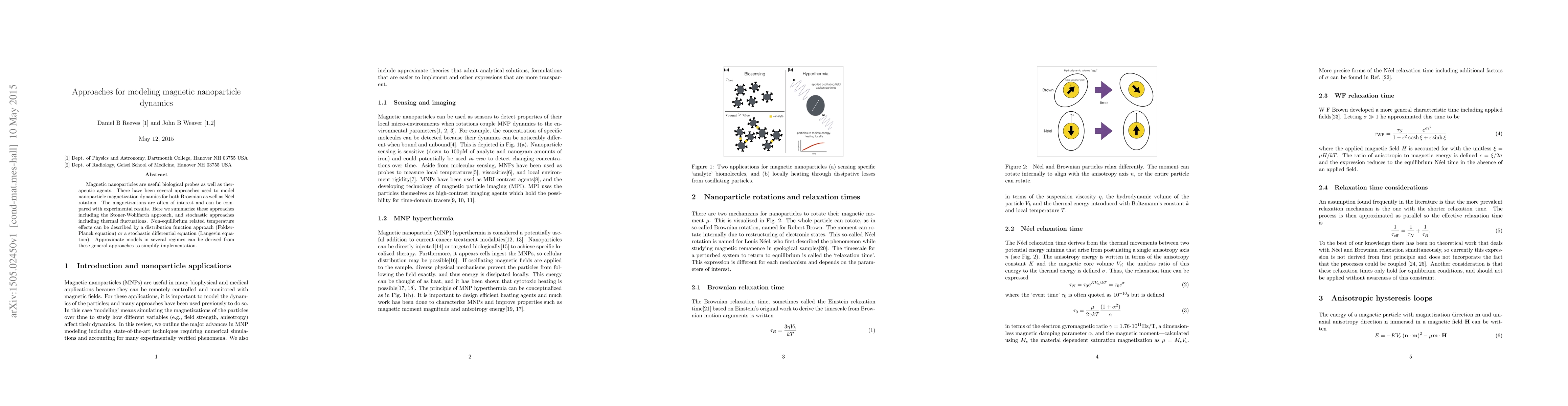 Magnetic nanoparticles are useful biological probes as well as therapeutic agents. There have been several approaches used to model nanoparticle magnetization dynamics for both Brownian as well as N\'eel rotation. The magnetizations are often of interest and can be compared with experimental results. Here we summarize these approaches including the Stoner-Wohlfarth approach, and stochastic approaches including thermal fluctuations. Non-equilibrium related temperature effects can be described by a distribution function approach (Fokker-Planck equation) or a stochastic differential equation (Langevin equation). Approximate models in several regimes can be derived from these general approaches to simplify implementation.