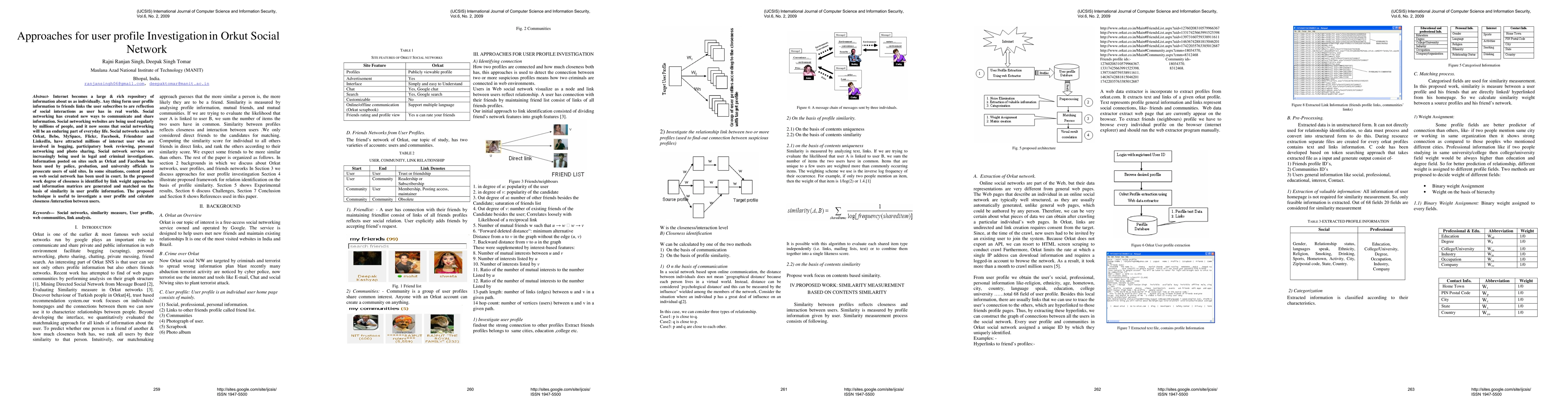 This paper explores methods for investigating user profiles in Orkut social network, focusing on link weight approaches to determine user interaction closeness and generating information matrices based on profile similarity for investigative purposes. The technique aims to enhance understanding of user relationships and interactions within the network.