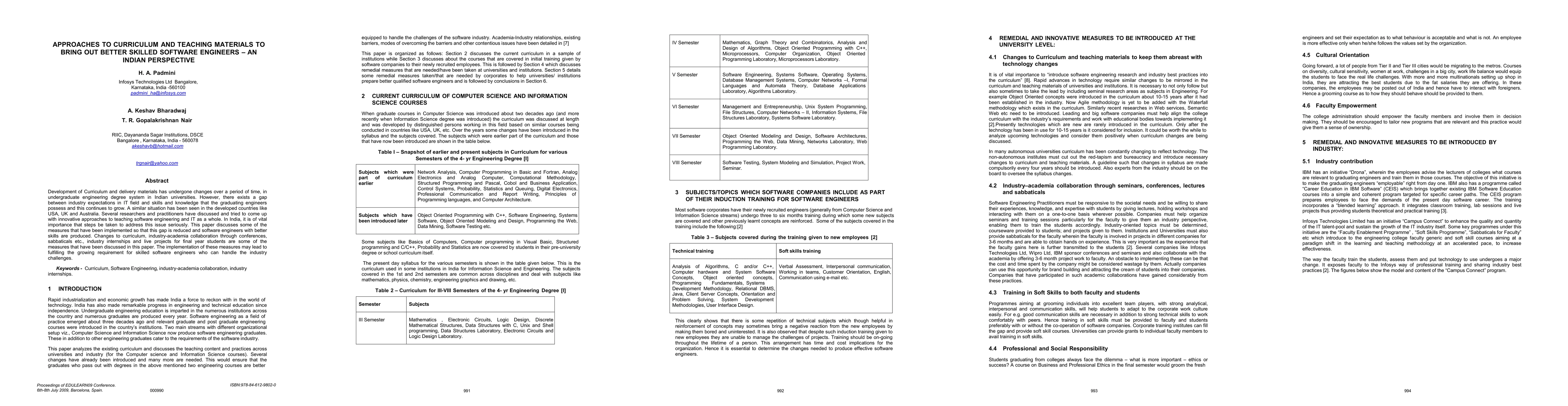 This paper explores innovative approaches to curriculum and teaching materials in Indian universities to bridge the skills gap between industry expectations and the capabilities of graduating software engineers. It highlights measures like curriculum changes, industry-academia collaborations, internships, and live projects to produce better-skilled software engineers.