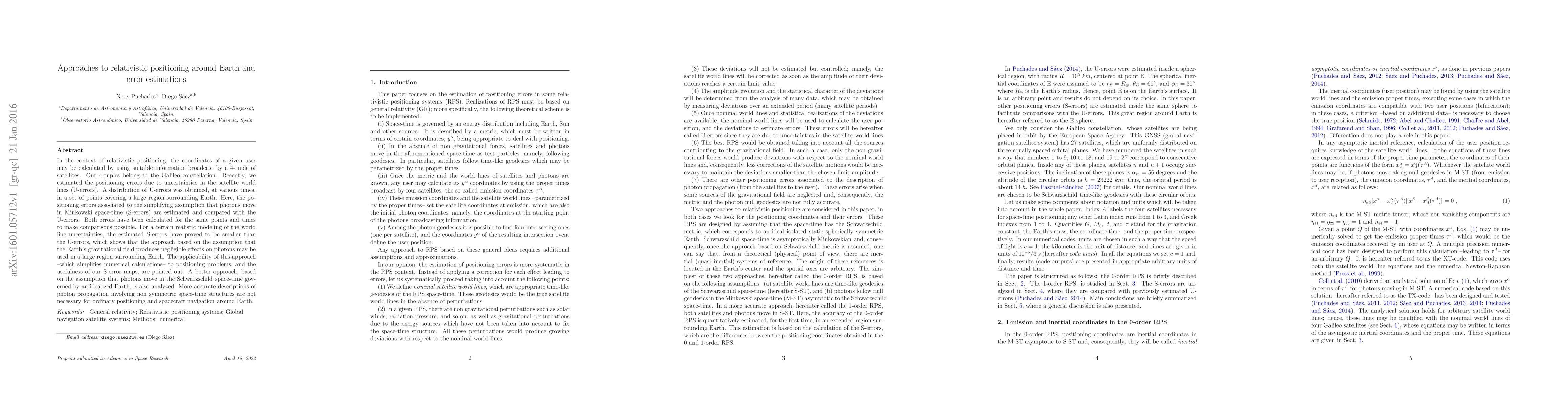 This paper investigates relativistic positioning errors using Galileo satellites, comparing two types: U-errors from satellite world line uncertainties and S-errors from the assumption of photon movement in Minkowski space-time. The study finds that S-errors are smaller than U-errors, indicating the simplified approach is effective for large regions around Earth, though a more accurate Schwarzschild space-time model is also discussed.