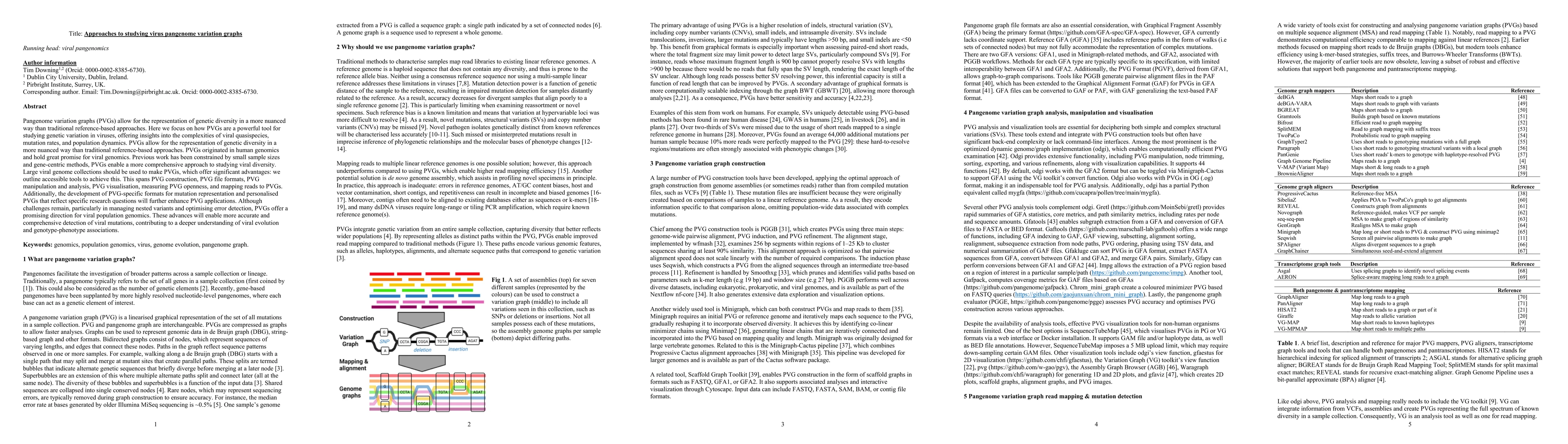 Pangenome variation graphs (PVGs) allow for the representation of genetic diversity in a more nuanced way than traditional reference-based approaches. Here we focus on how PVGs are a powerful tool for studying genetic variation in viruses, offering insights into the complexities of viral quasispecies, mutation rates, and population dynamics. PVGs allow for the representation of genetic diversity in a more nuanced way than traditional reference-based approaches. PVGs originated in human genomics and hold great promise for viral genomics. Previous work has been constrained by small sample sizes and gene-centric methods, PVGs enable a more comprehensive approach to studying viral diversity. Large viral genome collections should be used to make PVGs, which offer significant advantages: we outline accessible tools to achieve this. This spans PVG construction, PVG file formats, PVG manipulation and analysis, PVG visualisation, measuring PVG openness, and mapping reads to PVGs. Additionally, the development of PVG-specific formats for mutation representation and personalised PVGs that reflect specific research questions will further enhance PVG applications. Although challenges remain, particularly in managing nested variants and optimising error detection, PVGs offer a promising direction for viral population genomics. These advances will enable more accurate and comprehensive detection of viral mutations, contributing to a deeper understanding of viral evolution and genotype-phenotype associations.