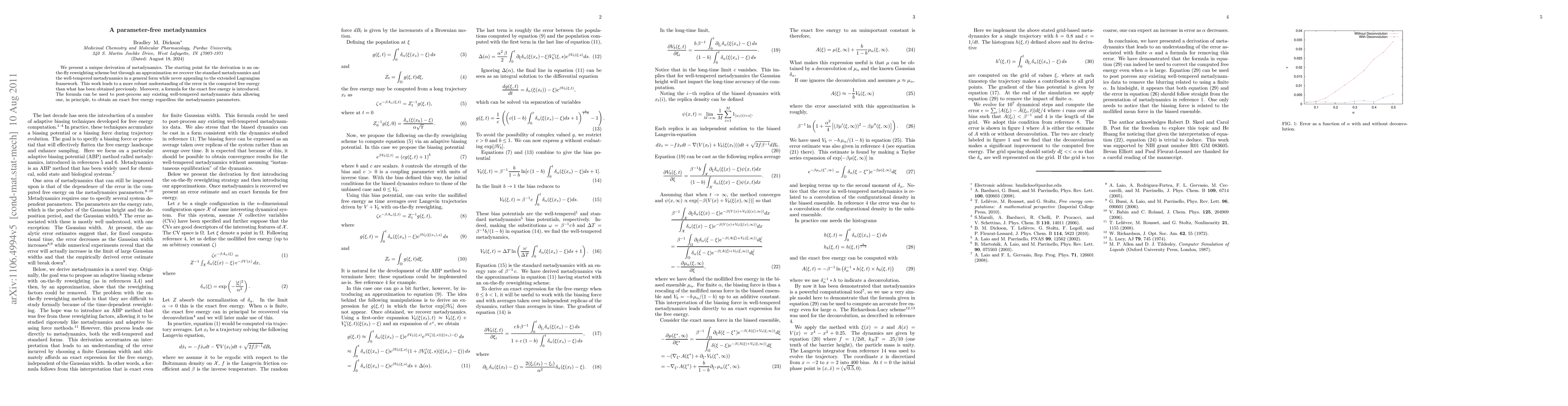 This paper derives metadynamics without relying on the extended Lagrangian framework, showing it can recover standard and well-tempered metadynamics. It introduces a formula for exact free energy, enabling post-processing of existing metadynamics data to obtain precise free energy estimates regardless of the initial parameters.