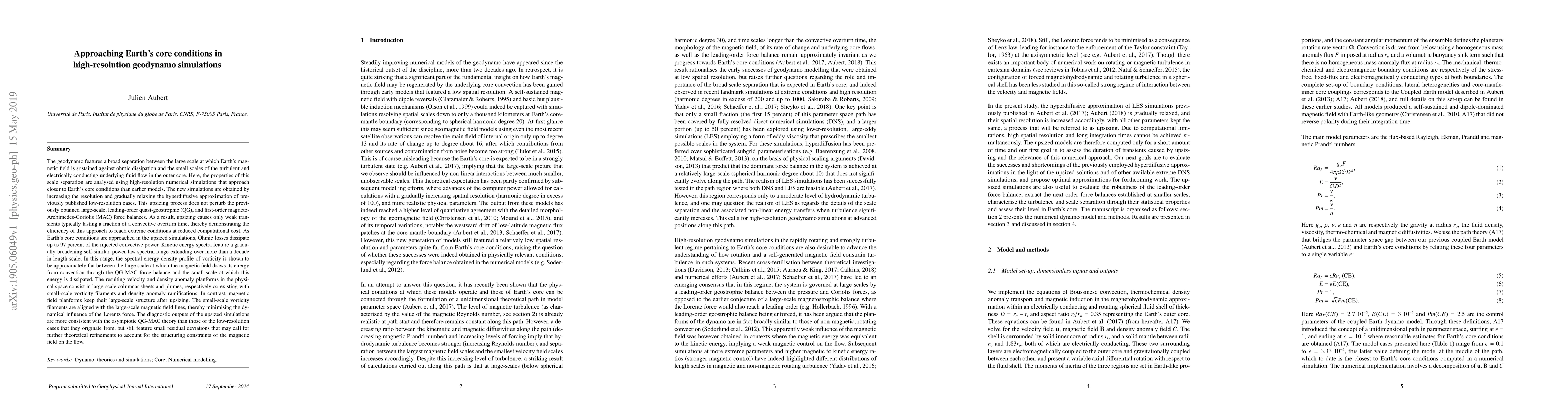 High-resolution numerical simulations of the geodynamo approaching Earth's core conditions, increasing resolution and relaxing hyperdiffusive approximation from earlier low-resolution models.