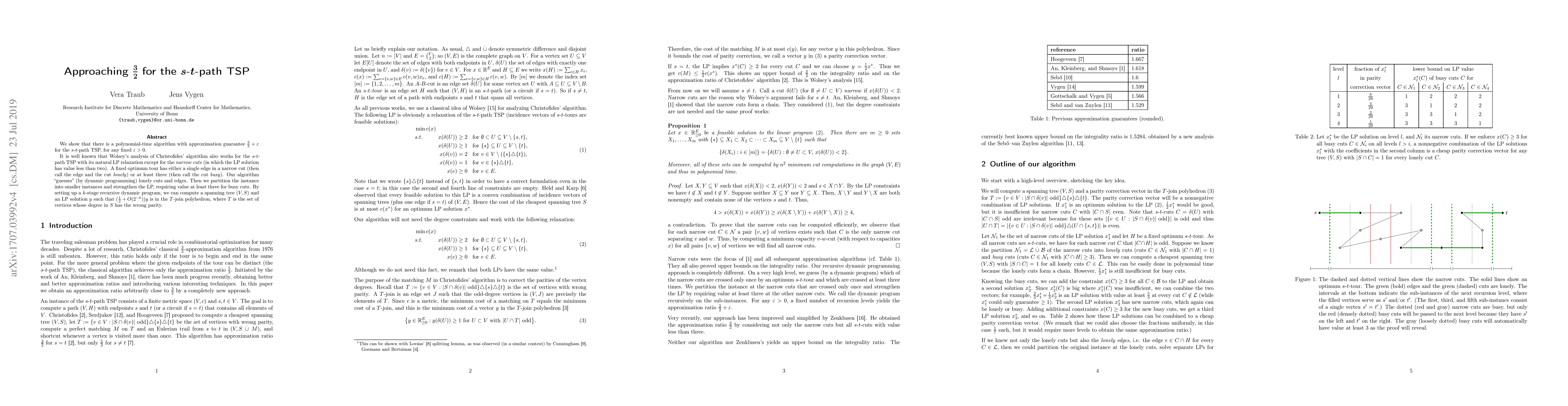 Researchers develop a polynomial-time algorithm for solving the s-t-path Traveling Salesman Problem with an approximation guarantee of 3/2 + epsilon, improving upon existing approaches for narrow cuts.