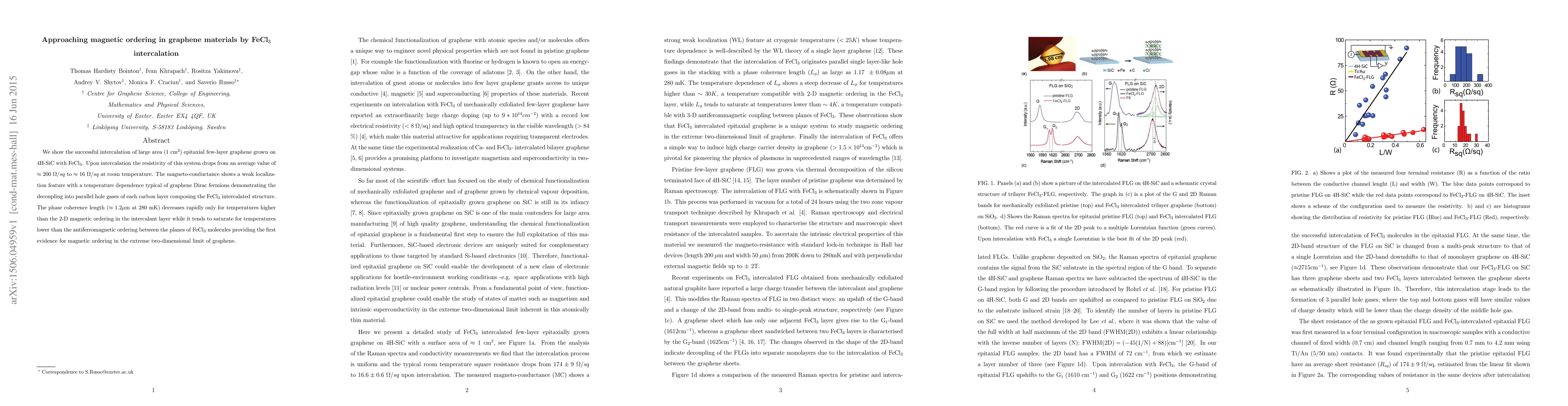 Researchers successfully intercalated FeCl$_3$ into graphene to induce magnetic ordering, resulting in a significant drop in resistivity and evidence of parallel hole gases. This discovery provides insight into the extreme two-dimensional limit of graphene.