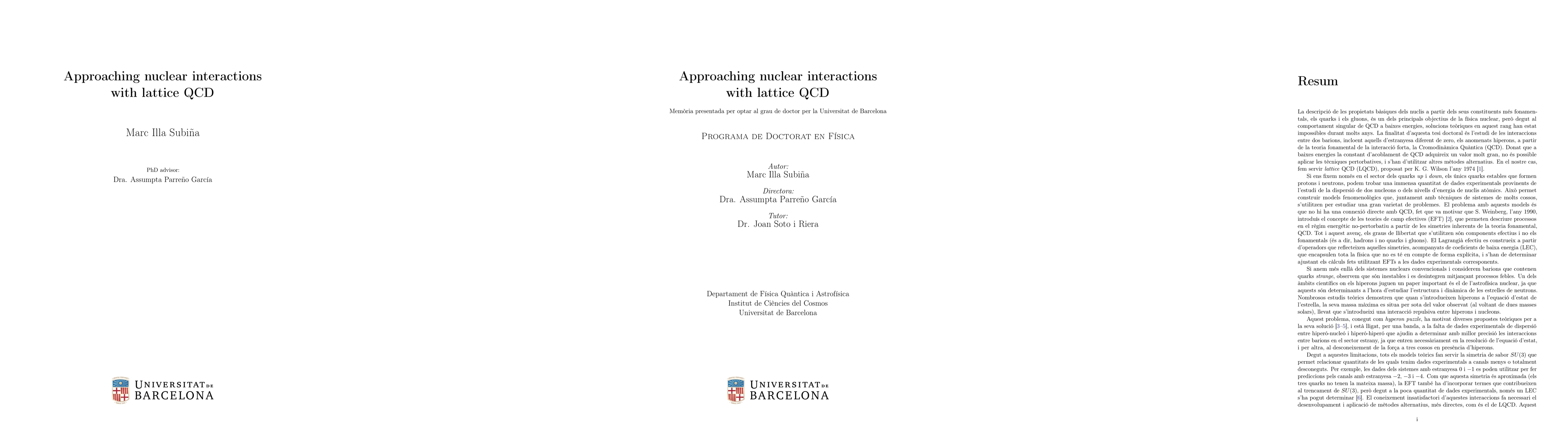 Nuclei make up the majority of the visible matter in the Universe; obtaining a first principles description of the nuclear properties and interactions between nuclei directly from the underlying theory of the strong interaction, Quantum Chromodynamics (QCD), is one of the main goals of the nuclear physics community. Although the theory was established nearly fifty years ago, the complexities of QCD at low energies precludes analytical solutions of the simplest hadronic systems, let alone the features of the nuclear forces. In this thesis we follow the lattice QCD approach, according to which QCD is solved non-perturbatively in a discretized space-time via large-scale numerical calculations. Specifically, the interactions between two octet baryons, with strangeness ranging from 0 to -4, are studied at low energies with larger-than-physical quark masses, and the low-energy coefficients in pionless effective field thepry relevant for two-baryon interactions, including those responsible for SU(3) flavor-symmetry breaking, are constrained.