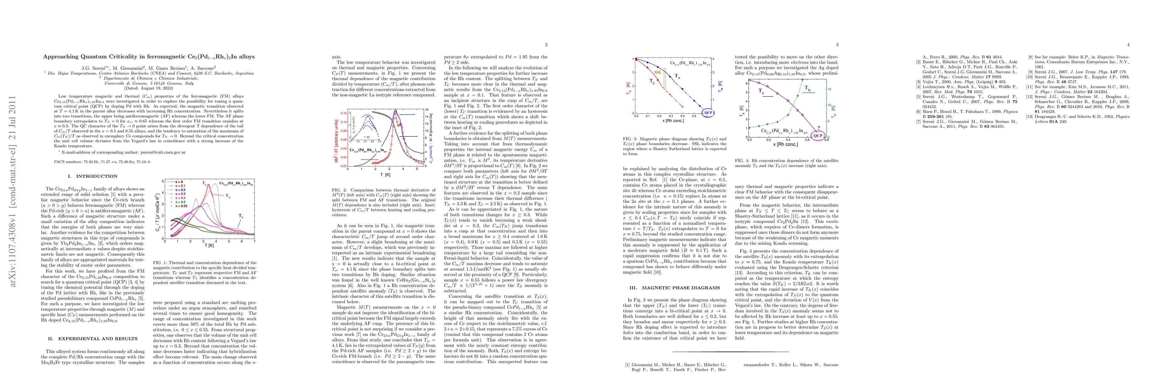 Low temperature magnetic and thermal (C_m) properties of the ferromagnetic (FM) alloys Ce_2.15 (Pd_1-x Rh_x)_1.95 In_0.9 were investigated in order to explore the possibility for tuning a quantum critical point (QCP) by doping Pd with Rh. As expected, the magnetic transition observed at T = 4.1K in the parent alloy decreases with increasing Rh concentration. Nevertheless it splits into two transitions, the upper being antiferromagnetic (AF) whereas the lower FM. The AF phase boundary extrapolates to T_N = 0 for x_cr ~ 0.65 whereas the first order FM transition vanishes at x ~ 0.3. The QC character of the T_N => 0 point arises from the divergent T dependence of the tail of C_m/T observed in the x = 0.5 and 0.55 alloys, and the tendency to saturation of the maximum of C_m(T_N)/T as observed in exemplary Ce compounds for T_N => 0. Beyond the critical concentration the unit cell volume deviates from the Vegard's law in coincidence with a strong increase of the Kondo temperature.