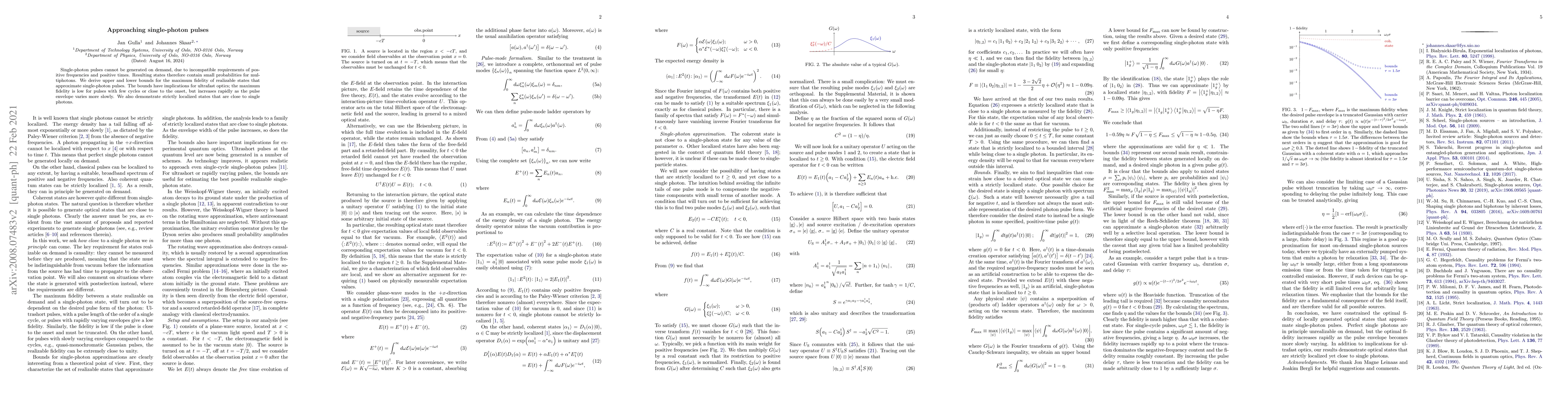 Single-photon pulses cannot be generated on demand, due to incompatible requirements of positive frequencies and positive times. Resulting states therefore contain small probabilities for multiphotons. We derive upper and lower bounds for the maximum fidelity of realizable states that approximate single-photon pulses. The bounds have implications for ultrafast optics; the maximum fidelity is low for pulses with few cycles or close to the onset, but increases rapidly as the pulse envelope varies more slowly. We also demonstrate strictly localized states that are close to single photons.