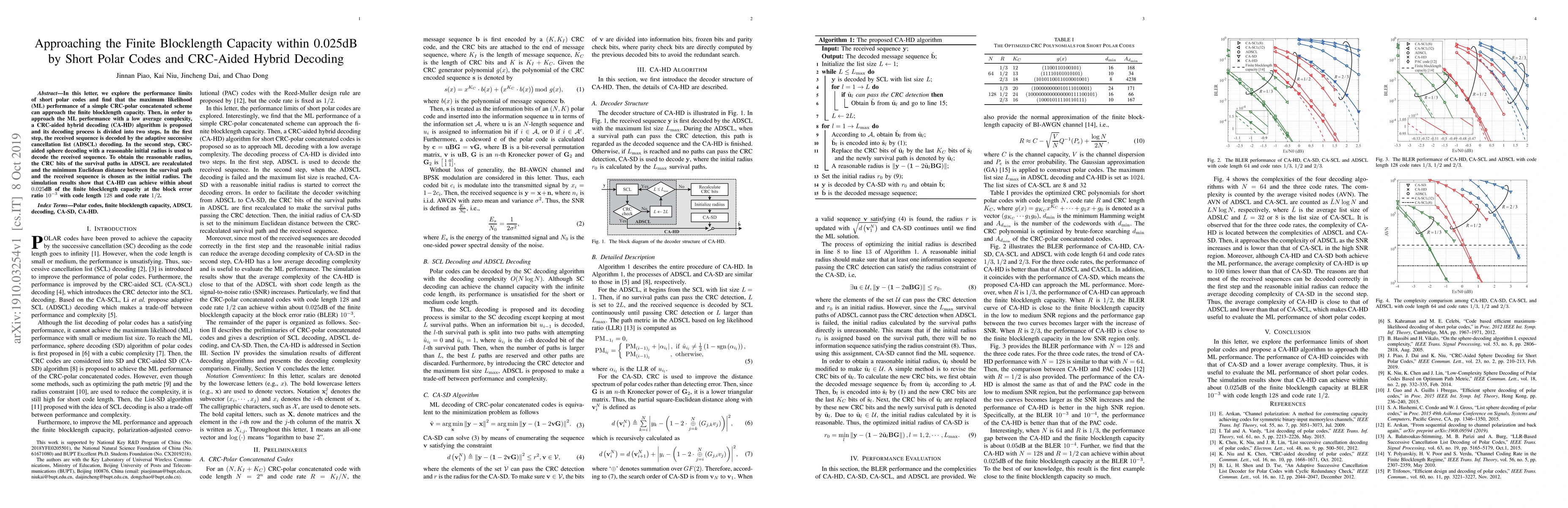 A new decoding algorithm called CRC-aided hybrid decoding (CA-HD) is proposed to approach the finite blocklength capacity of short polar codes within 0.025dB error rate with low average complexity.