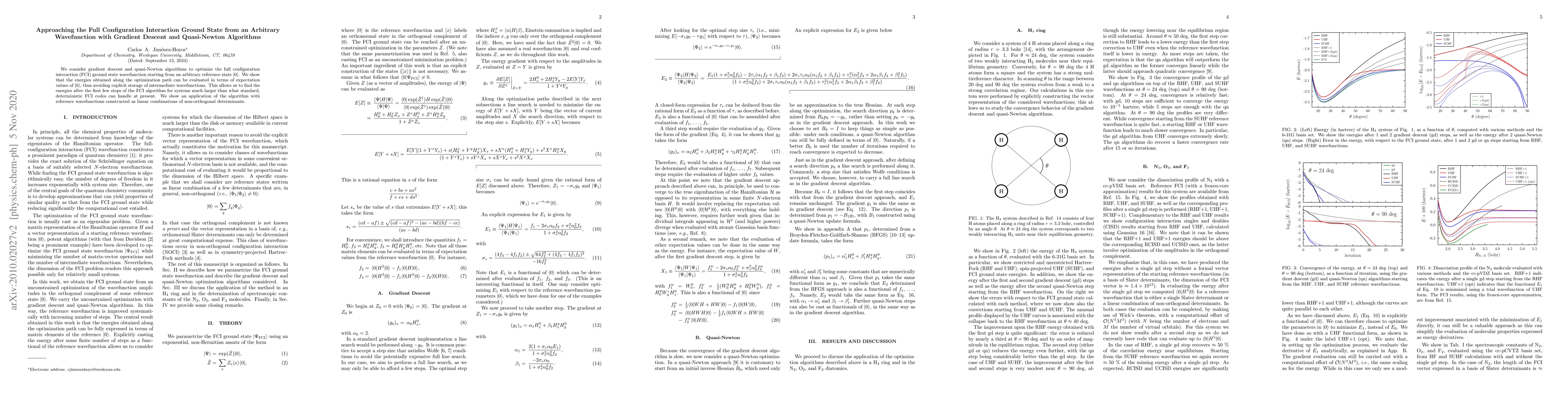 This paper explores gradient descent and quasi-Newton optimization methods to efficiently approach the full configuration interaction ground state from an arbitrary initial wavefunction. The approach avoids storing intermediate wavefunctions, enabling calculations for larger systems than traditional methods.