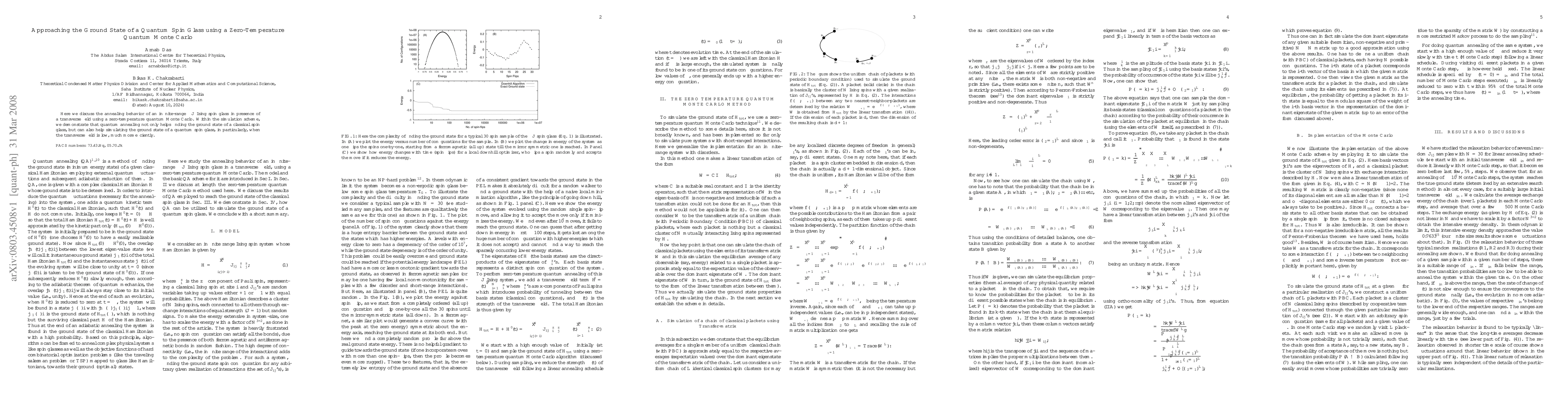 This research explores the effectiveness of zero-temperature quantum Monte Carlo in simulating the annealing behavior of a quantum spin glass, showing that it efficiently finds the ground state, especially under low transverse fields. Quantum annealing is demonstrated to outperform classical methods in this context.