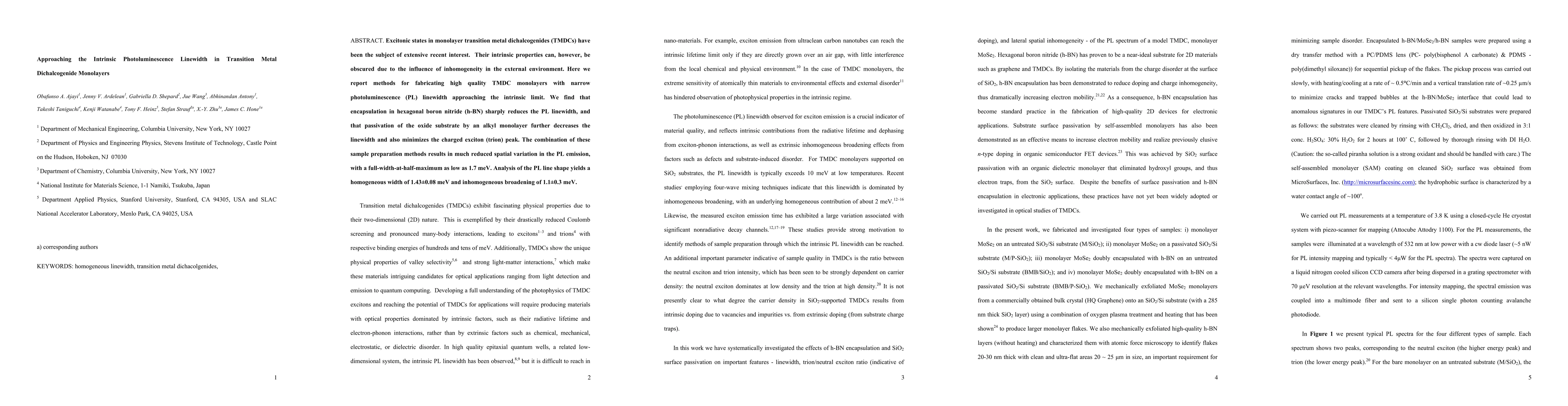 This paper explores methods to fabricate high-quality monolayer transition metal dichalcogenides (TMDCs) with narrow photoluminescence linewidths. Encapsulation in hexagonal boron nitride and passivation of the oxide substrate further reduce linewidth, achieving a full-width-at-half-maximum as low as 1.7 meV.