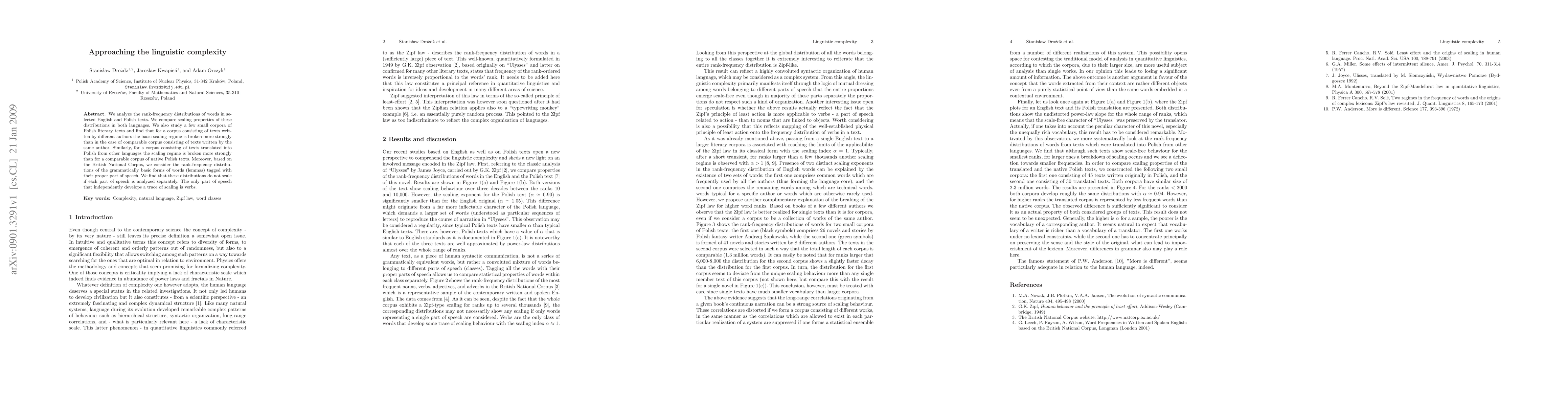 We analyze the rank-frequency distributions of words in selected English and Polish texts. We compare scaling properties of these distributions in both languages. We also study a few small corpora of Polish literary texts and find that for a corpus consisting of texts written by different authors the basic scaling regime is broken more strongly than in the case of comparable corpus consisting of texts written by the same author. Similarly, for a corpus consisting of texts translated into Polish from other languages the scaling regime is broken more strongly than for a comparable corpus of native Polish texts. Moreover, based on the British National Corpus, we consider the rank-frequency distributions of the grammatically basic forms of words (lemmas) tagged with their proper part of speech. We find that these distributions do not scale if each part of speech is analyzed separately. The only part of speech that independently develops a trace of scaling is verbs.