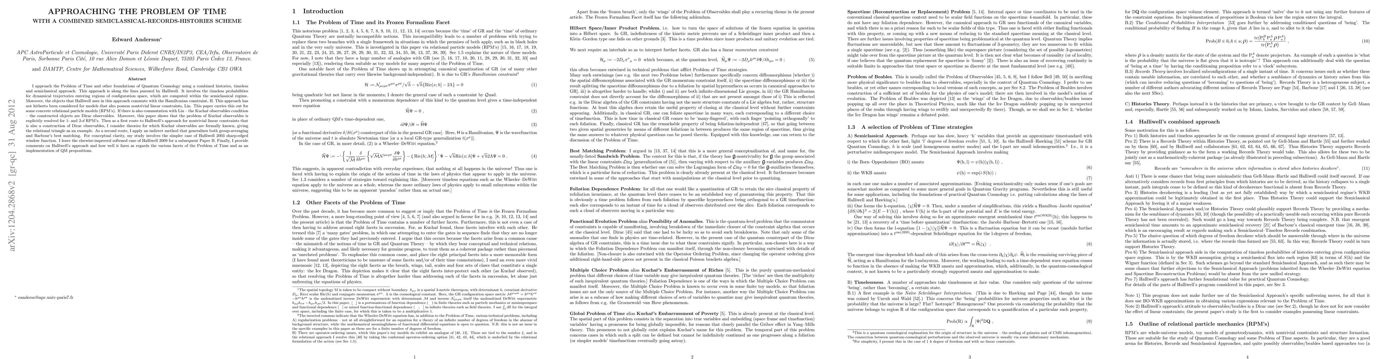 I approach the Problem of Time and other foundations of Quantum Cosmology using a combined histories, timeless and semiclassical approach. This approach is along the lines pursued by Halliwell. It involves the timeless probabilities for dynamical trajectories entering regions of configuration space, which are computed within the semiclassical regime. Moreover, the objects that Halliwell uses in this approach commute with the Hamiltonian constraint, H. This approach has not hitherto been considered for models that also possess nontrivial linear constraints, Lin. This paper carries this out for some concrete relational particle models (RPM's). If there is also commutation with Lin - the Kuchar observables condition - the constructed objects are Dirac observables. Moreover, this paper shows that the problem of Kuchar observables is explicitly resolved for 1- and 2-d RPM's. Then as a first route to Halliwell's approach for nontrivial linear constraints that is also a construction of Dirac observables, I consider theories for which Kuchar observables are formally known, giving the relational triangle as an example. As a second route, I apply an indirect method that generalizes both group-averaging and Barbour's best matching. For conceptual clarity, my study involves the simpler case of Halliwell 2003 sharp-edged window function. I leave the elsewise-improved softened case of Halliwell 2009 for a subsequent Paper II. Finally, I provide comments on Halliwell's approach and how well it fares as regards the various facets of the Problem of Time and as an implementation of QM propositions.