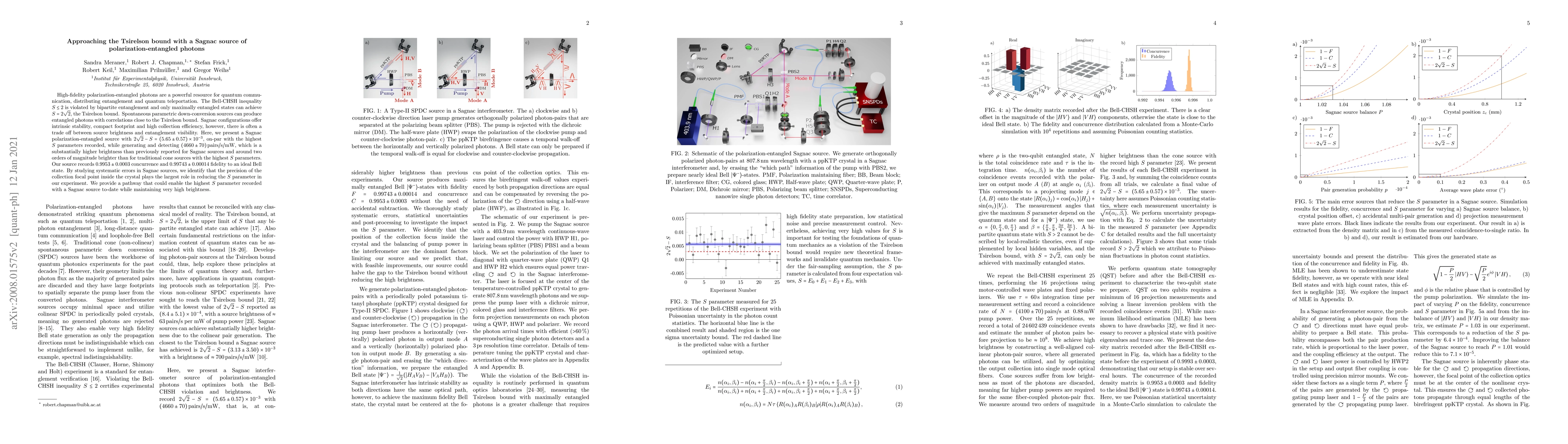 The paper presents a Sagnac source producing polarization-entangled photons that achieves a Bell-CHSH $S$ parameter of $2\sqrt{2}-S=(5.65\pm0.57)\times10^{-3}$, close to the Tsirelson bound, while being two orders of magnitude brighter than traditional sources. Systematic error analysis identifies focal point precision as key to improving $S$.