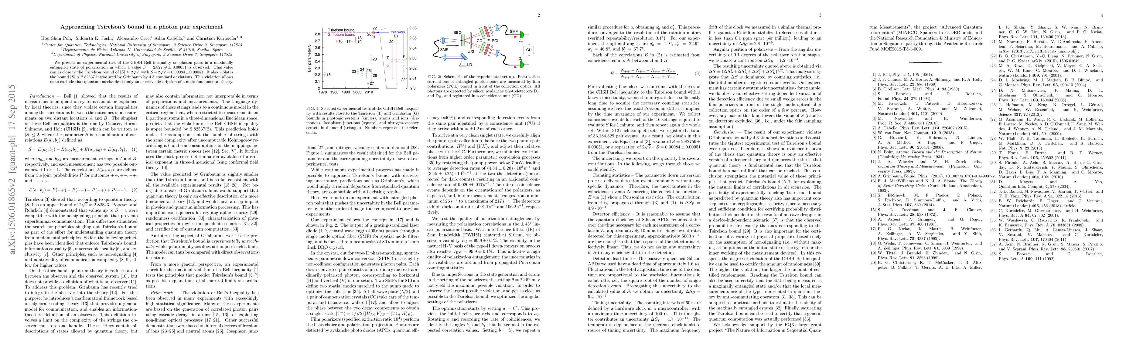 This paper tests the CHSH Bell inequality using photon pairs, achieving a correlation value close to Tsirelson's bound, violating Grinbaum's predicted upper limit by 4.3 standard deviations and setting a new experimental lower bound for Tsirelson's bound. This result has significant implications for quantum information processing and cryptographic security.