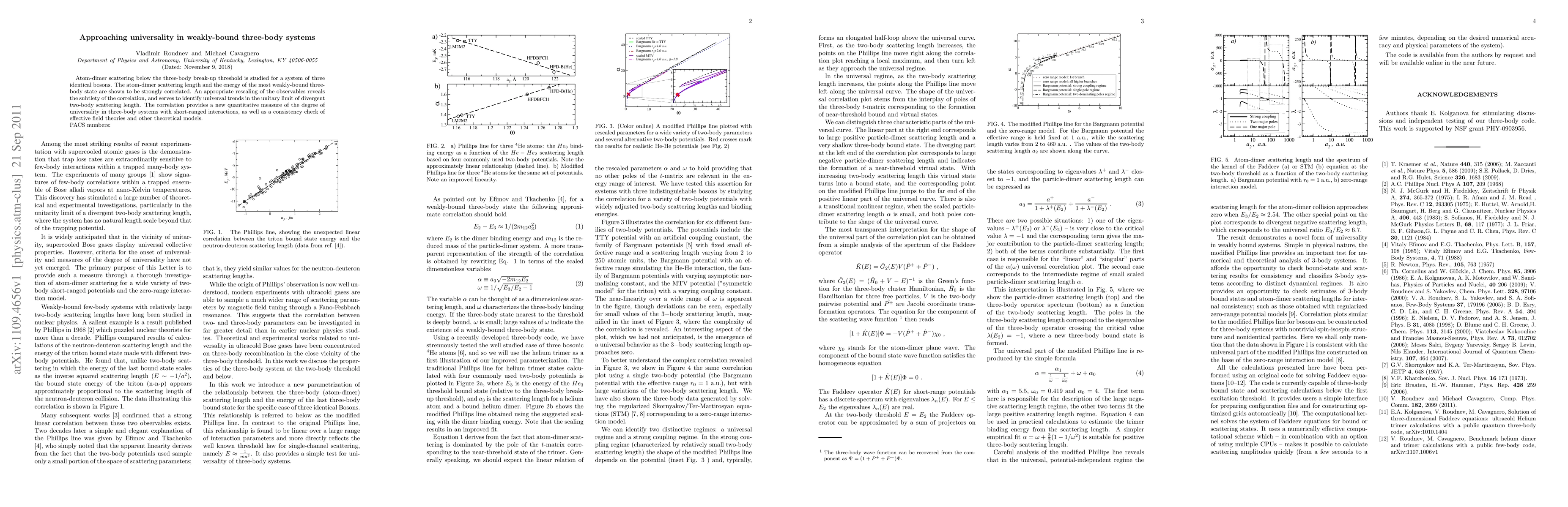 This paper investigates the atom-dimer scattering in weakly-bound three-body systems of identical bosons, revealing a strong correlation between the scattering length and the energy of the most weakly-bound state. The study identifies universal trends in the unitary limit, providing a new measure of universality in such systems and validating theoretical models.