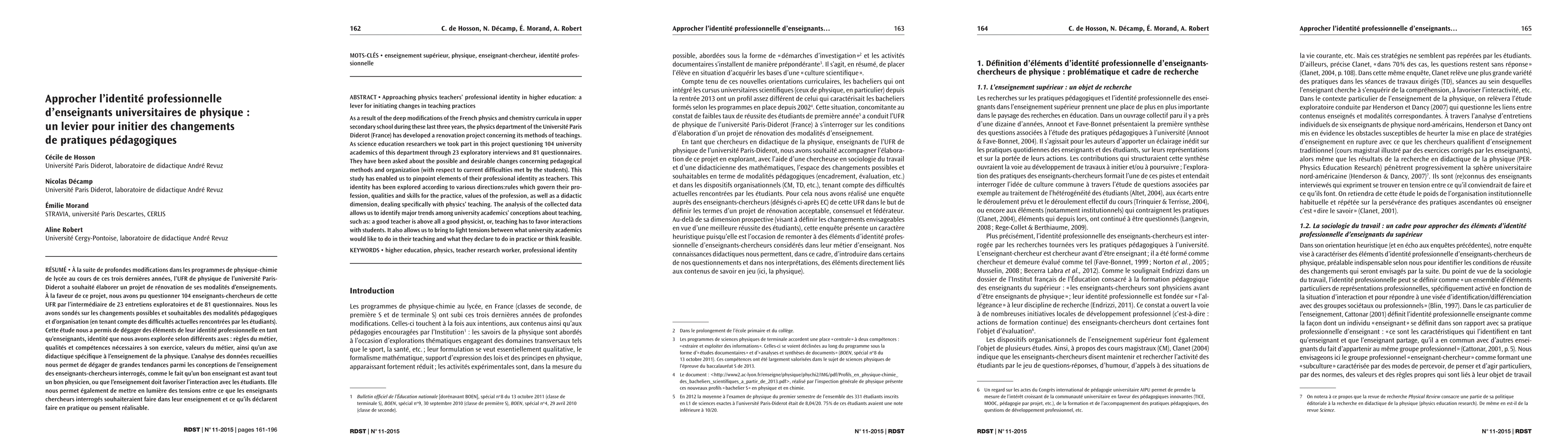 As a result of the deep modifications of the French physics and chemistry curricula in upper secondary school during these last three years, the physics department of the Universit\'e Paris Diderot (France) wished to develop a renovation project concerning its methods of teachings. As science education researchers we took part in this project questioning 104 university academics of this department through 23 exploratory interviews and 81 questionnaires. They have been asked about the possible and desirable changes concerning pedagogical methods and organization (with respect to current difficulties met by the students). This study has enabled us to pinpoint elements of their professional identity as teachers. This identity has been explored according to various directions: rules which govern their profession, qualities and skills for the practice, values of the profession, as well as a didactic dimension, dealing specifically with physics' teaching. The analysis of the collected data allows us to identify major trends among university academics' conceptions about teaching, such as: a good teacher is above all a good physicist, or, teaching has to favor interactions with students. It also allows us to bring to light tensions between what university academics would like to do in their teaching and what they declare to do in practice or think feasible