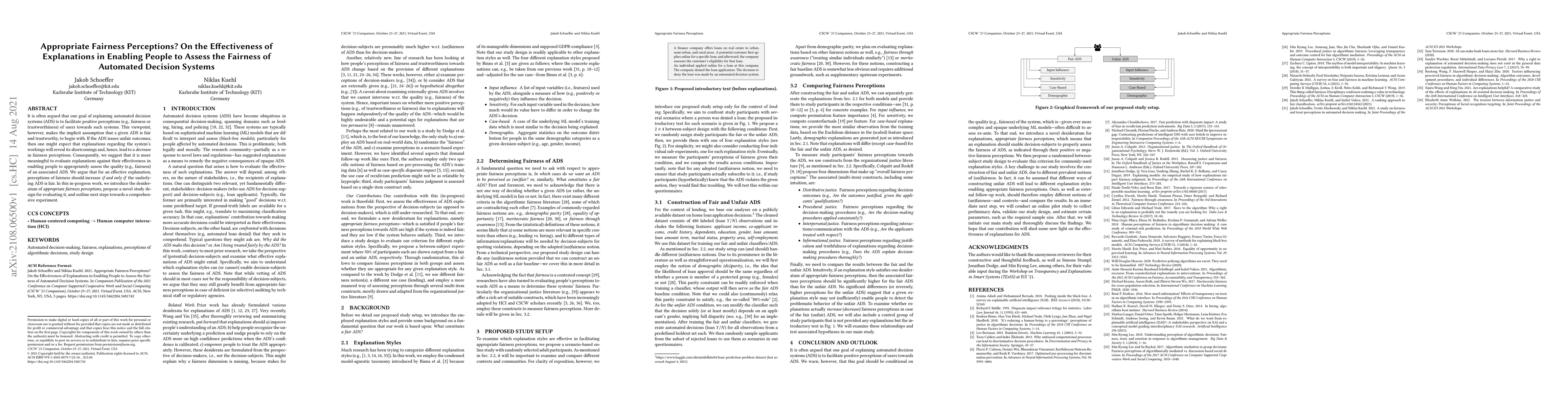 This paper explores how explanations of automated decision systems (ADS) should enable users to accurately assess the fairness of these systems. It argues that explanations should increase fairness perceptions only if the ADS itself is fair, introducing the concept of "appropriate fairness perceptions" and proposing a study design to evaluate this.