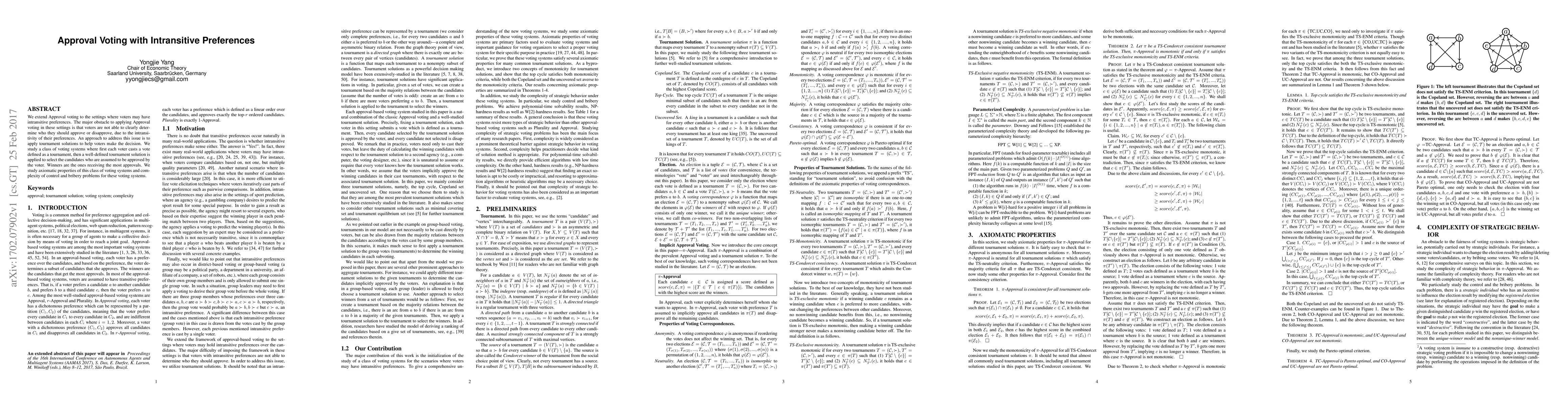 This paper explores a new approach to Approval voting that uses tournament solutions to help voters make decisions in settings where their preferences are intransitive. It studies the axiomatic properties and complexity of controlling and bribing issues for these systems.