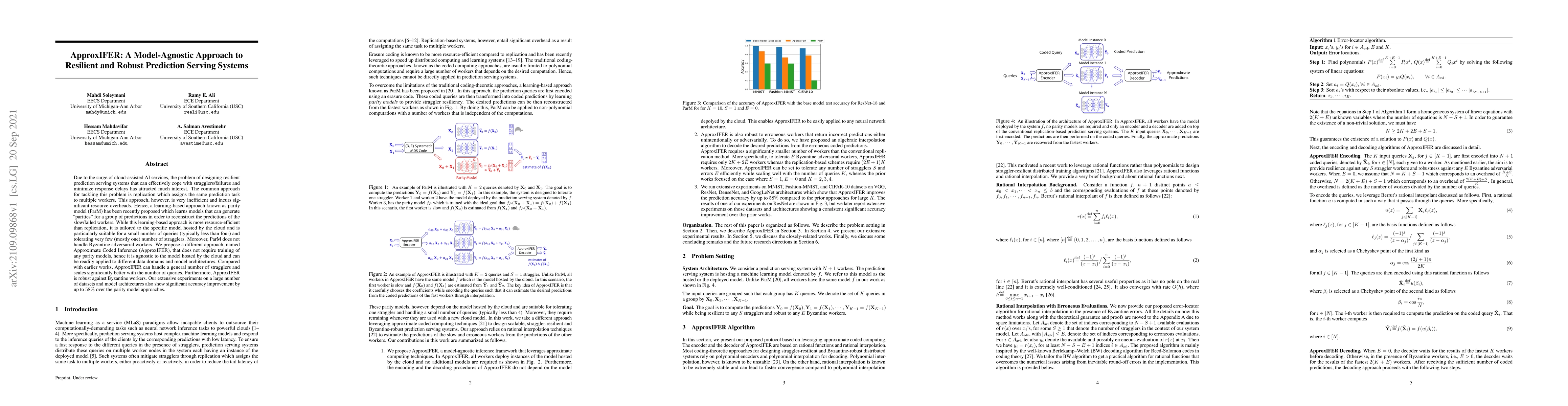 Due to the surge of cloud-assisted AI services, the problem of designing resilient prediction serving systems that can effectively cope with stragglers/failures and minimize response delays has attracted much interest. The common approach for tackling this problem is replication which assigns the same prediction task to multiple workers. This approach, however, is very inefficient and incurs significant resource overheads. Hence, a learning-based approach known as parity model (ParM) has been recently proposed which learns models that can generate parities for a group of predictions in order to reconstruct the predictions of the slow/failed workers. While this learning-based approach is more resource-efficient than replication, it is tailored to the specific model hosted by the cloud and is particularly suitable for a small number of queries (typically less than four) and tolerating very few (mostly one) number of stragglers. Moreover, ParM does not handle Byzantine adversarial workers. We propose a different approach, named Approximate Coded Inference (ApproxIFER), that does not require training of any parity models, hence it is agnostic to the model hosted by the cloud and can be readily applied to different data domains and model architectures. Compared with earlier works, ApproxIFER can handle a general number of stragglers and scales significantly better with the number of queries. Furthermore, ApproxIFER is robust against Byzantine workers. Our extensive experiments on a large number of datasets and model architectures also show significant accuracy improvement by up to 58% over the parity model approaches.
