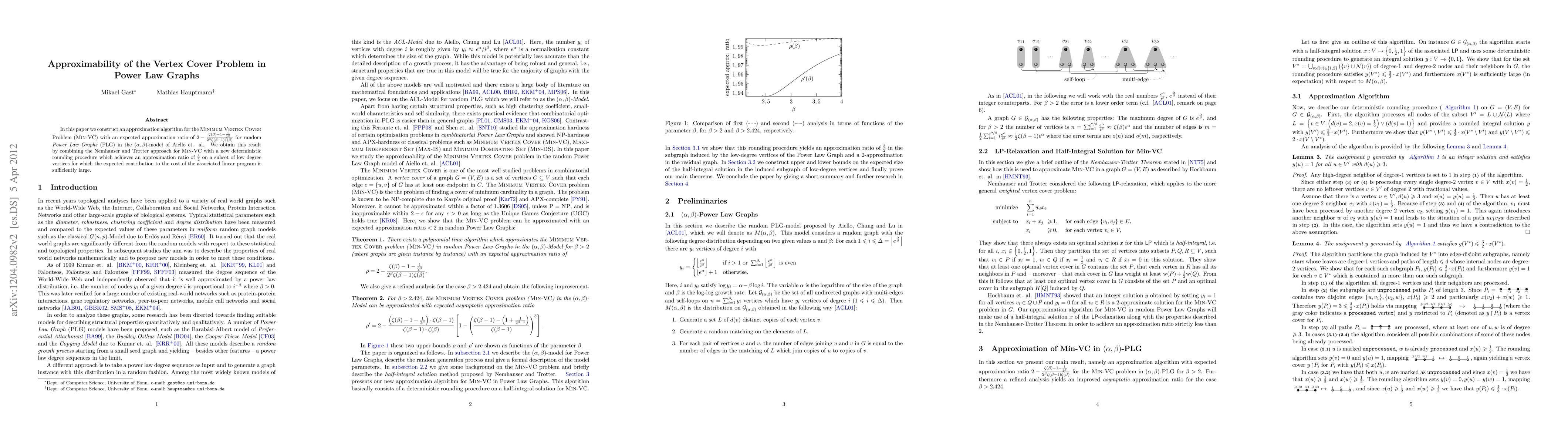 The paper presents an approximation algorithm for the Minimum Vertex Cover (Min-VC) problem in Power Law Graphs (PLG) using the (alpha,beta)-model of Aiello et al. It combines the Nemhauser and Trotter approach with a new deterministic rounding procedure.