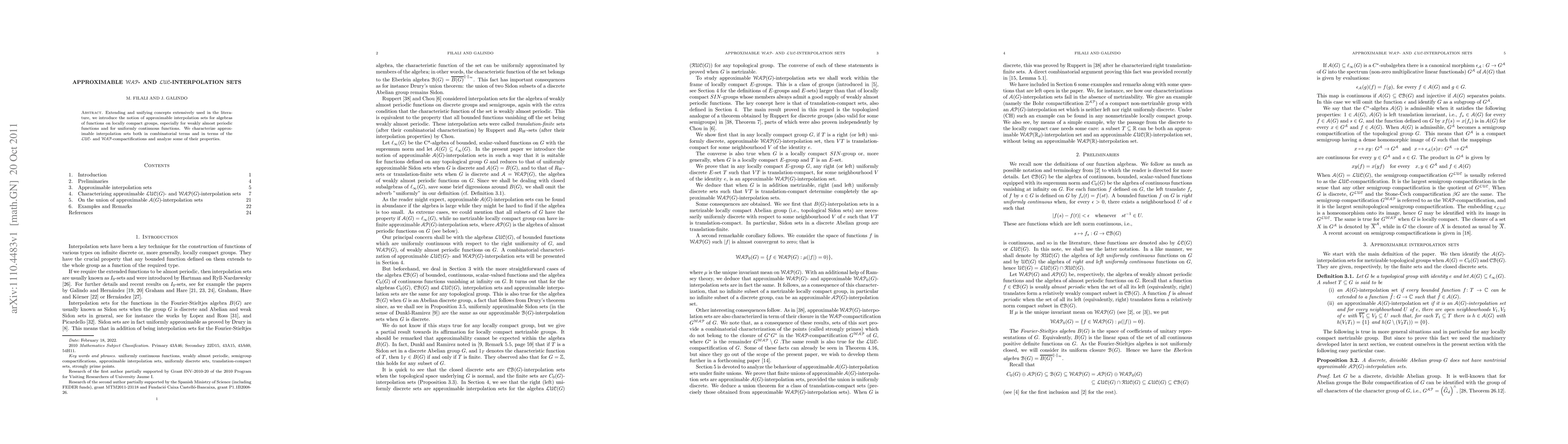 Extending and unifying concepts extensively used in the literature, we introduce the notion of approximable interpolation sets for algebras of functions on locally compact groups, especially for weakly almost periodic functions and for uniformly continuous functions. We characterize approximable interpolation sets both in combinatorial terms and in terms of the $\mathscr{LUC}$- and $\mathscr{WAP}$-compactifications and analyze some of their properties.