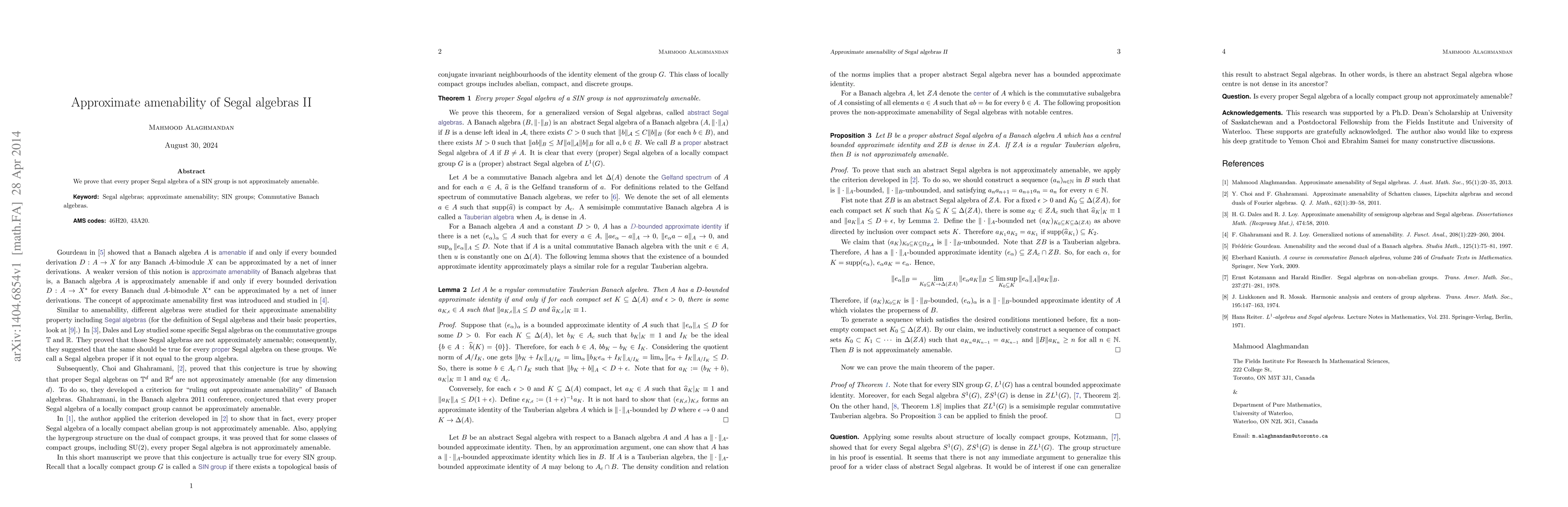 We prove that every proper Segal algebra of a SIN group is not approximately amenable.