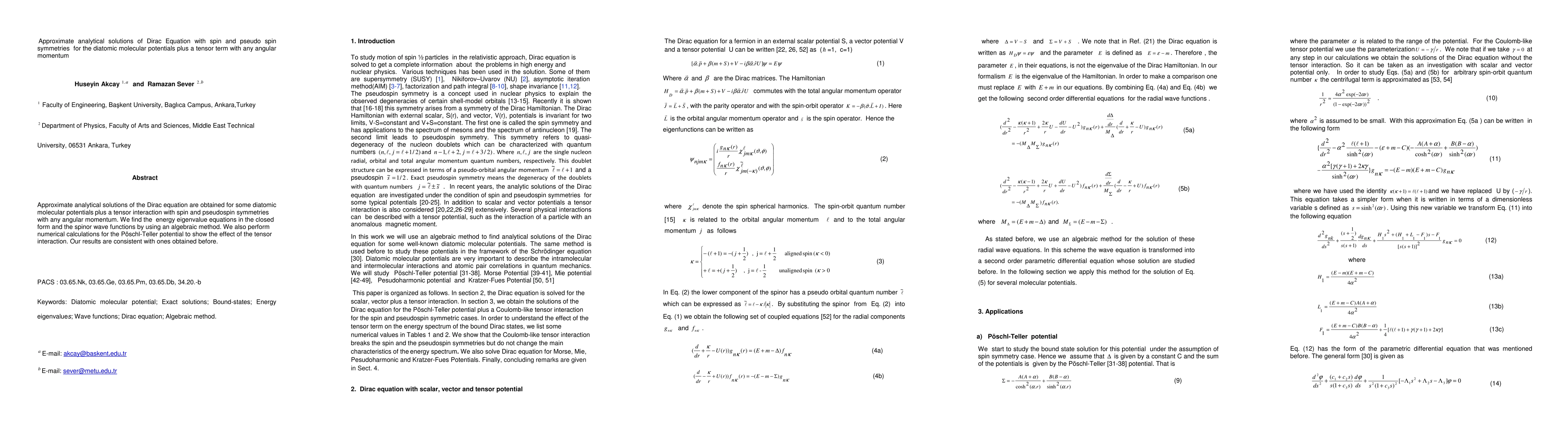 This paper presents approximate analytical solutions for the Dirac equation under diatomic molecular potentials with tensor interactions, utilizing spin and pseudospin symmetries for any angular momentum. The study derives closed-form energy eigenvalue equations and spinor wave functions via algebraic methods, and validates results with numerical calculations for the Pöschl-Teller potential.