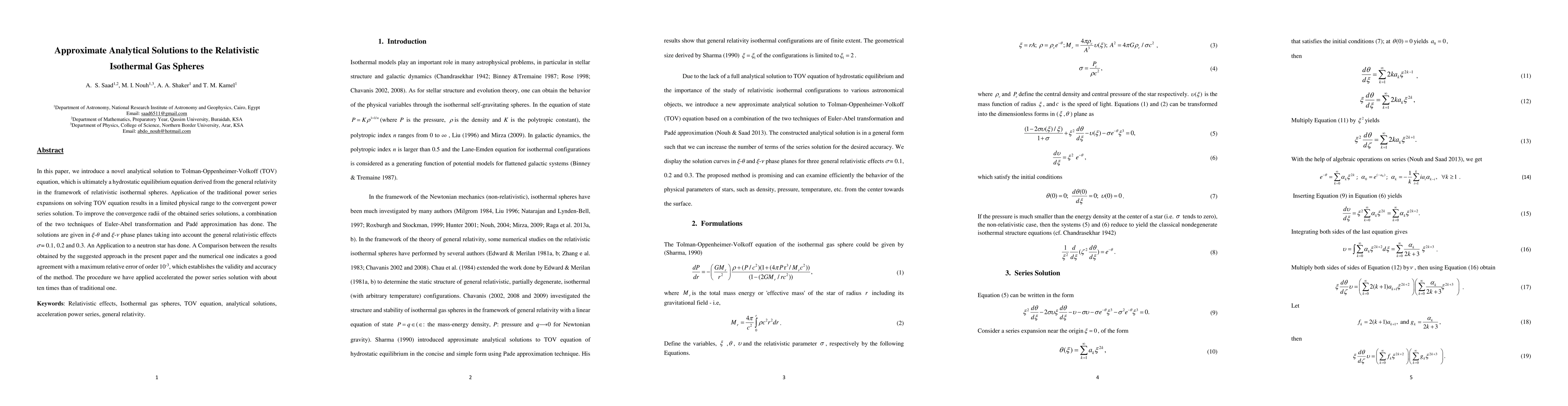 Researchers developed a new method to solve equations for relativistic isothermal gas spheres, improving convergence radii and achieving accurate results with minimal computational effort, applicable to neutron star models.
