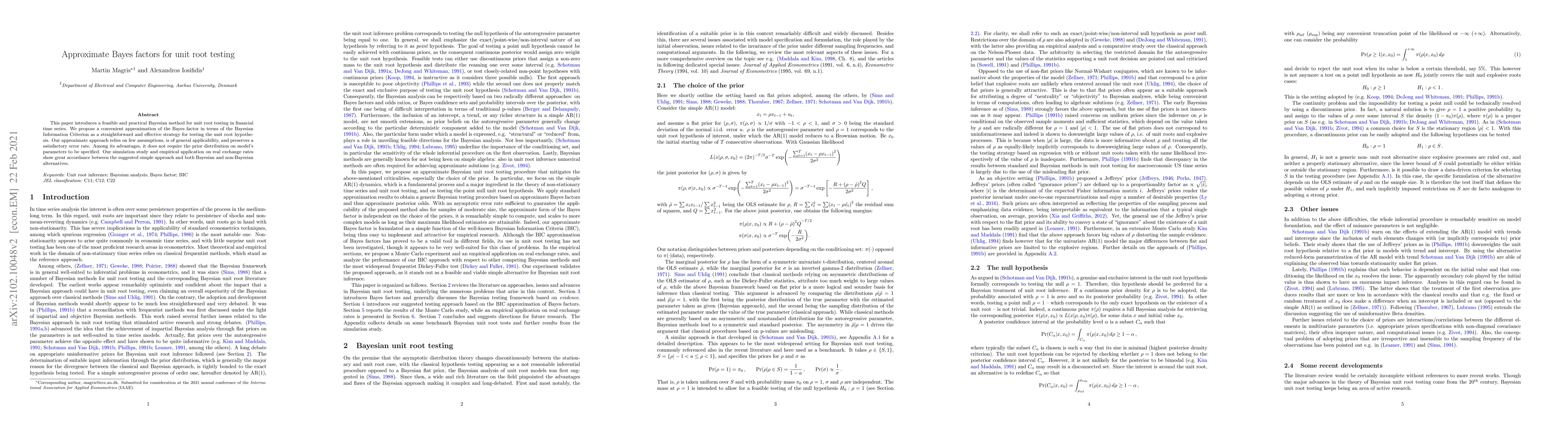 This paper proposes a practical Bayesian method for unit root testing in financial time series using an approximate Bayes factor based on the Bayesian Information Criterion, which requires no specification of prior distributions and shows good performance in simulations and real data applications. The method offers a straightforward alternative to traditional unit root tests.