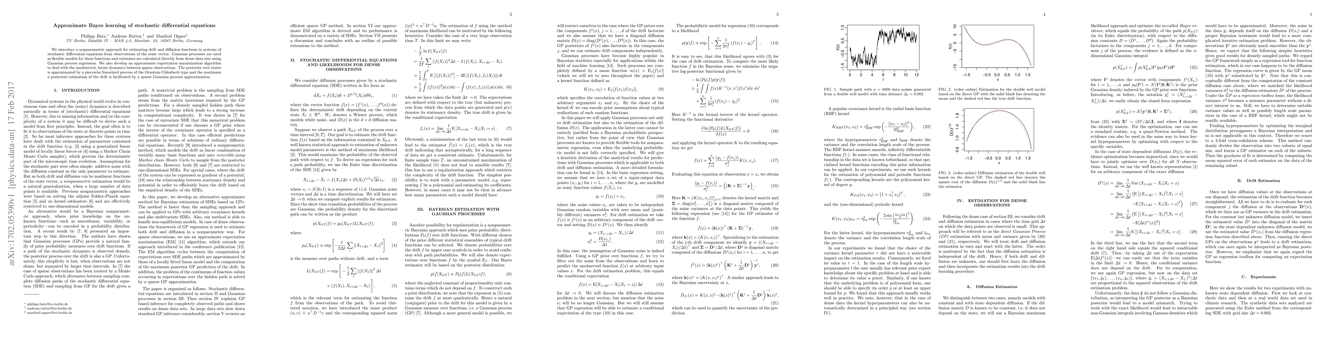 We introduce a nonparametric approach for estimating drift and diffusion functions in systems of stochastic differential equations from observations of the state vector. Gaussian processes are used as flexible models for these functions and estimates are calculated directly from dense data sets using Gaussian process regression. We also develop an approximate expectation maximization algorithm to deal with the unobserved, latent dynamics between sparse observations. The posterior over states is approximated by a piecewise linearized process of the Ornstein-Uhlenbeck type and the maximum a posteriori estimation of the drift is facilitated by a sparse Gaussian process approximation.