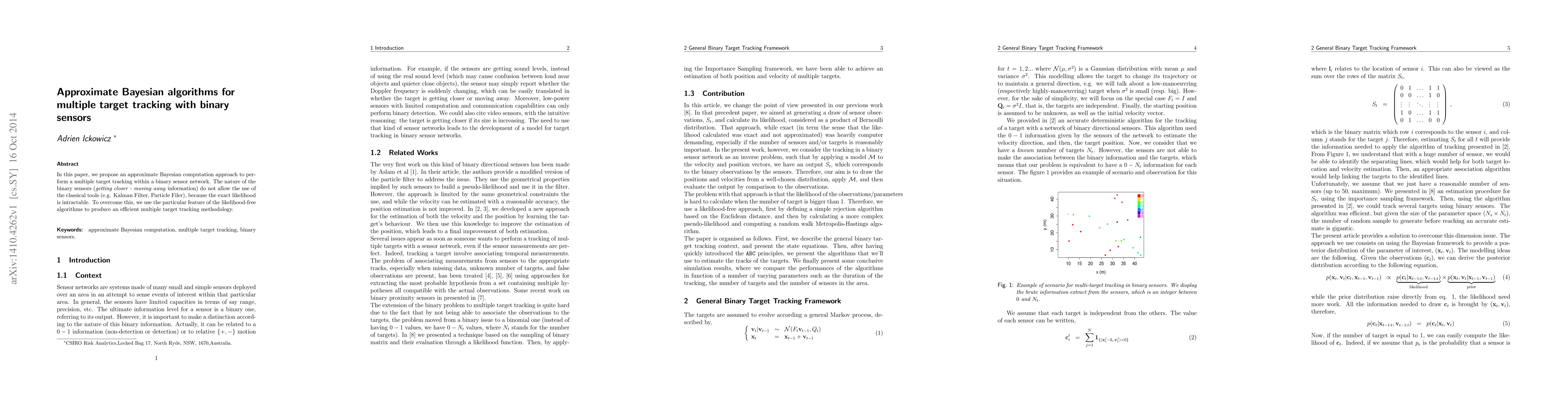 This paper introduces an approximate Bayesian computation method for tracking multiple targets in a binary sensor network, where classical tracking tools are inapplicable due to the intractability of the exact likelihood. The proposed likelihood-free approach effectively handles the unique information provided by binary sensors.