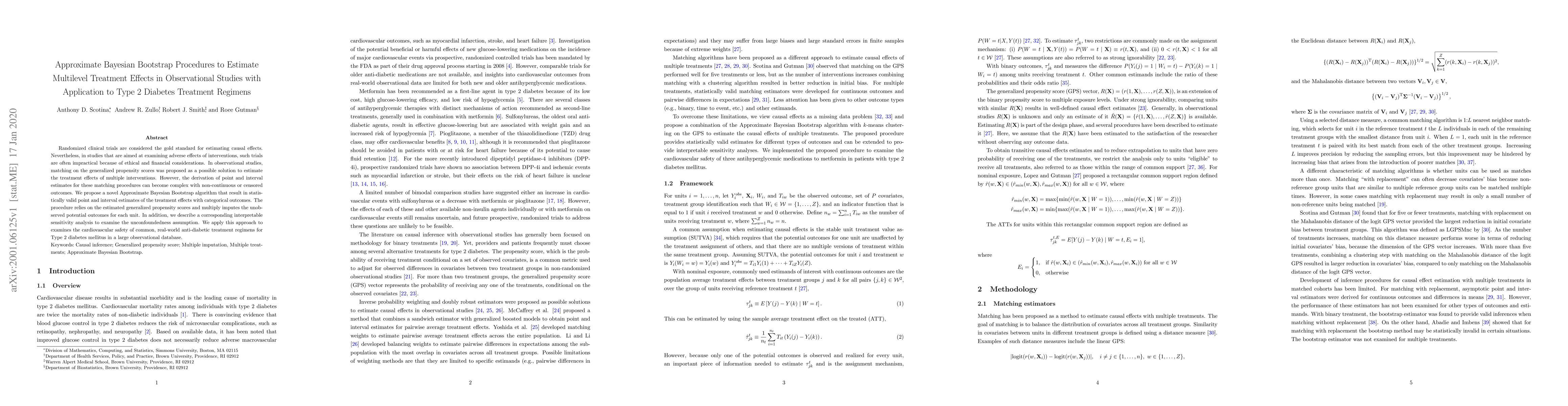 This study introduces an Approximate Bayesian Bootstrap method to estimate treatment effects in observational studies, focusing on Type 2 diabetes treatment regimens and providing a novel approach for analyzing categorical outcomes.