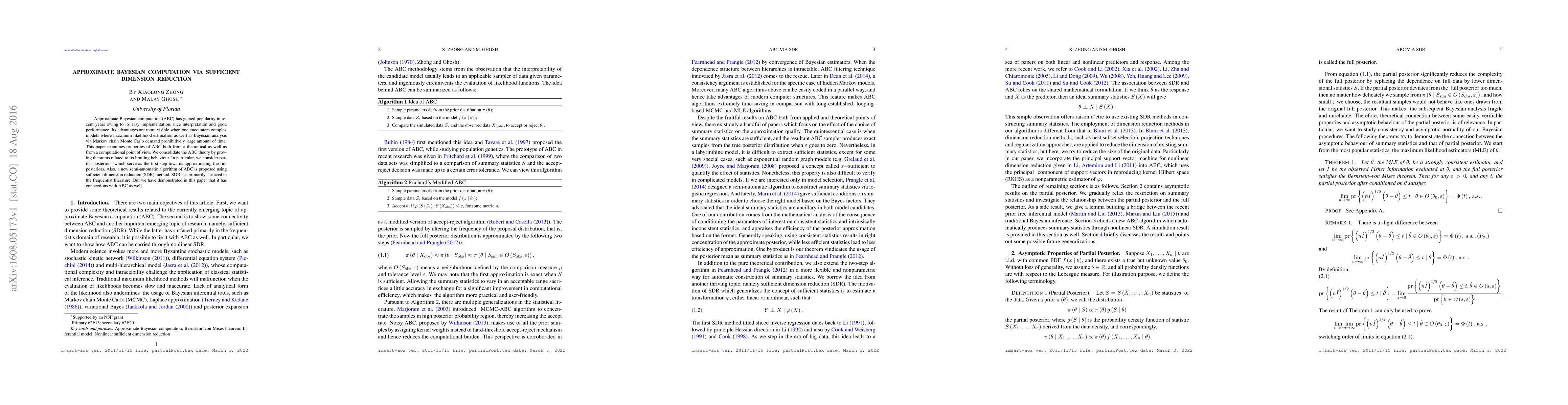 This paper explores the properties of Approximate Bayesian Computation (ABC) and proposes a new semi-automatic ABC algorithm incorporating sufficient dimension reduction (SDR). It consolidates ABC theory through theorems on its limiting behavior and introduces partial posteriors for approximating full posteriors.