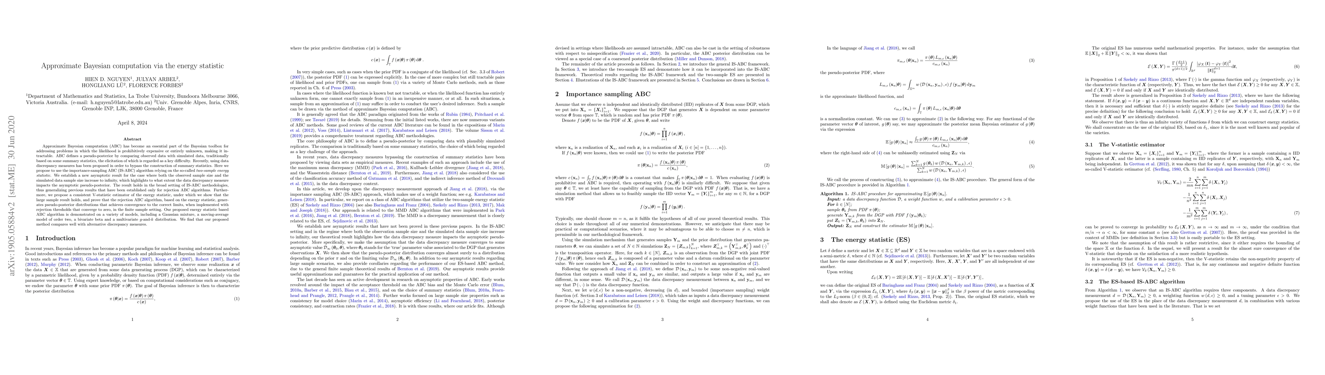This paper proposes an Approximate Bayesian Computation (ABC) method using the energy statistic for scenarios where likelihood computation is infeasible. It introduces an importance-sampling ABC algorithm based on the energy statistic and establishes an asymptotic result for its convergence, demonstrating its effectiveness across various models.