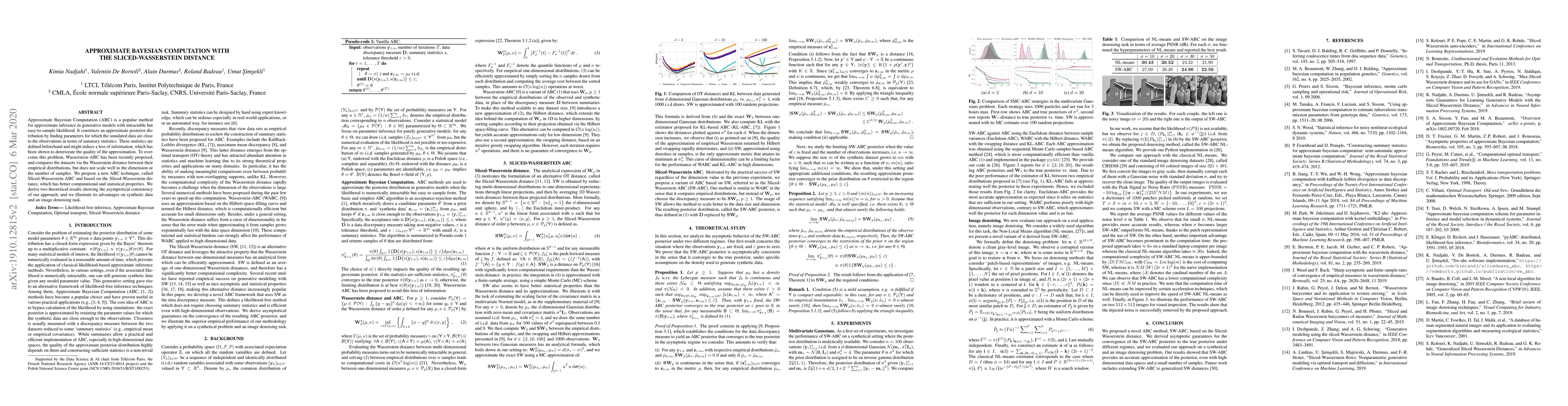 Researchers propose Sliced-Wasserstein ABC, a new method for approximate Bayesian computation that outperforms existing approaches in terms of computational efficiency and statistical accuracy, offering improved results on synthetic data and real-world applications.