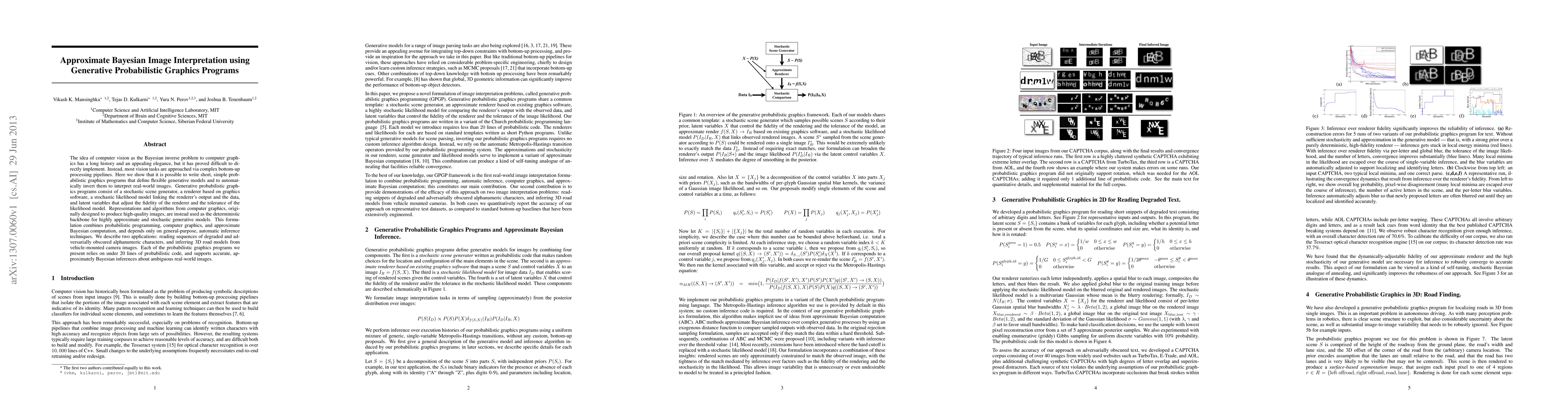This paper proposes using generative probabilistic graphics programs to interpret real-world images through approximate Bayesian inference, demonstrating applications in reading obscured text and inferring 3D road models. The approach leverages simple probabilistic code to invert complex graphics models for vision tasks.