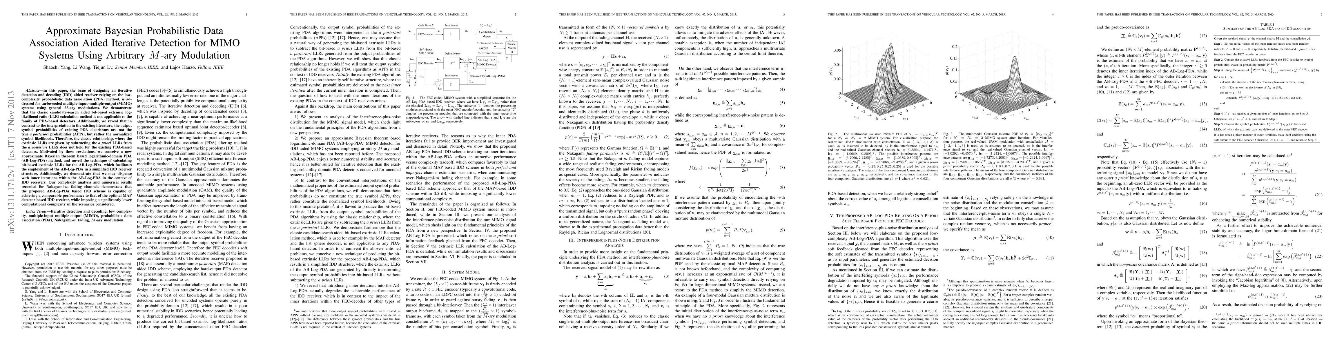 In this paper, the issue of designing an iterative-detection-and-decoding (IDD)-aided receiver, relying on the low-complexity probabilistic data association (PDA) method, is addressed for turbo-coded multiple-input-multiple-output (MIMO) systems using general M-ary modulations. We demonstrate that the classic candidate-search-aided bit-based extrinsic log-likelihood ratio (LLR) calculation method is not applicable to the family of PDA-based detectors. Additionally, we reveal that, in contrast to the interpretation in the existing literature, the output symbol probabilities of existing PDA algorithms are not the true a posteriori probabilities (APPs) but, rather, the normalized symbol likelihoods. Therefore, the classic relationship, where the extrinsic LLRs are given by subtracting the a priori LLRs from the a posteriori LLRs, does not hold for the existing PDA-based detectors. Motivated by these revelations, we conceive a new approximate Bayesian-theorem-based logarithmic-domain PDA (AB-Log-PDA) method and unveil the technique of calculating bit-based extrinsic LLRs for the AB-Log-PDA, which facilitates the employment of the AB-Log-PDA in a simplified IDD receiver structure. Additionally, we demonstrate that we may dispense with inner iterations within the AB-Log-PDA in the context of IDD receivers. Our complexity analysis and numerical results recorded for Nakagami-m fading channels demonstrate that the proposed AB-Log-PDA-based IDD scheme is capable of achieving a performance comparable with that of the optimal maximum a posteriori (MAP)-detector-based IDD receiver, while imposing significantly lower computational complexity in the scenarios considered.