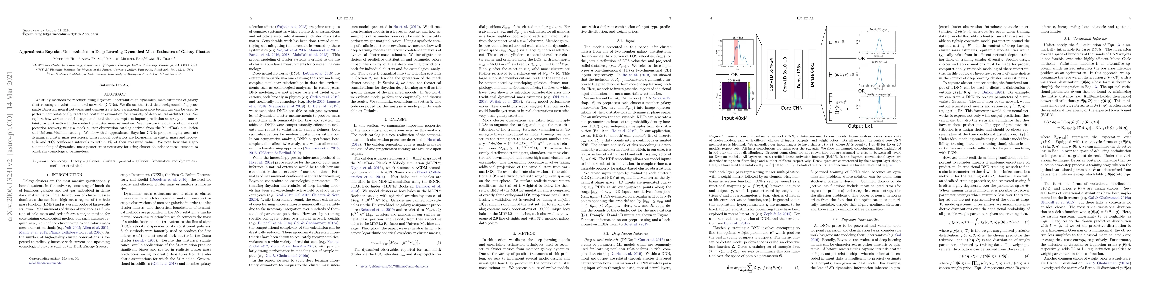 This paper investigates the use of convolutional neural networks (CNNs) and approximate Bayesian methods to reconstruct uncertainties in dynamical mass estimates of galaxy clusters. The study demonstrates that variational inference techniques enable accurate posterior estimation, achieving precise confidence interval recovery essential for constraining cosmological parameters.