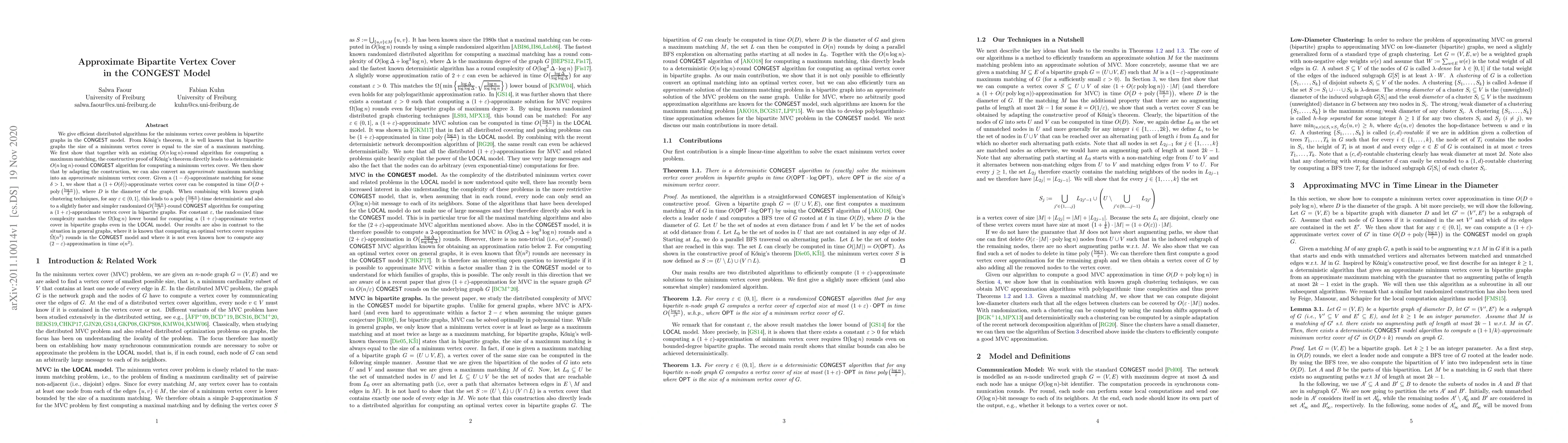The research presents efficient distributed algorithms for the minimum vertex cover problem in bipartite graphs using the CONGEST model. It leverages Kőnig's theorem, which equates the size of a minimum vertex cover to a maximum matching, and adapts constructive proofs to design algorithms.