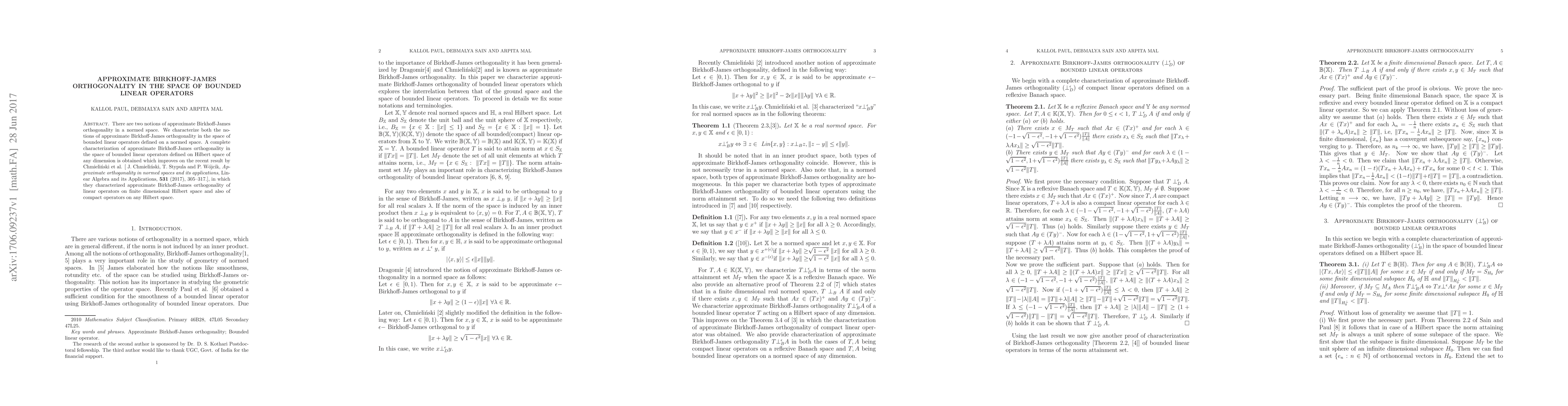 This paper characterizes two notions of approximate Birkhoff-James orthogonality in the space of bounded linear operators on a normed space, providing a complete characterization for operators on any dimensional Hilbert space, which improves upon a previous result by Chmieli\'nski et al.