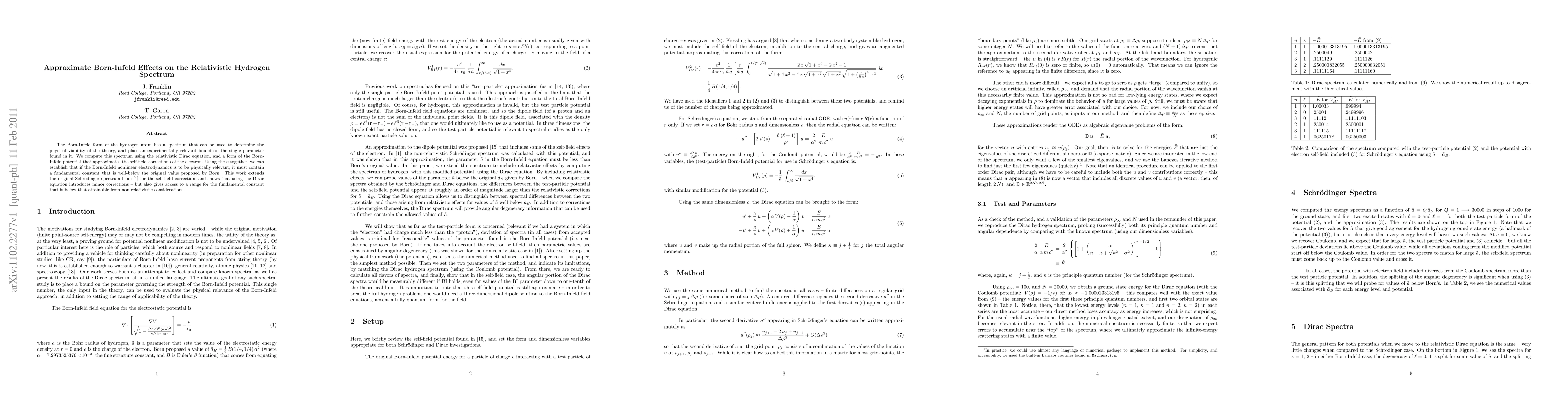 Researchers used relativistic Dirac equations to compute the hydrogen spectrum in Born-Infeld theory, finding that a fundamental constant must be below the original value proposed by Born to make the theory physically relevant.